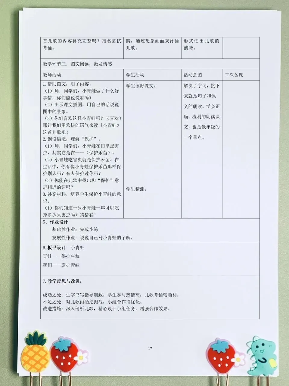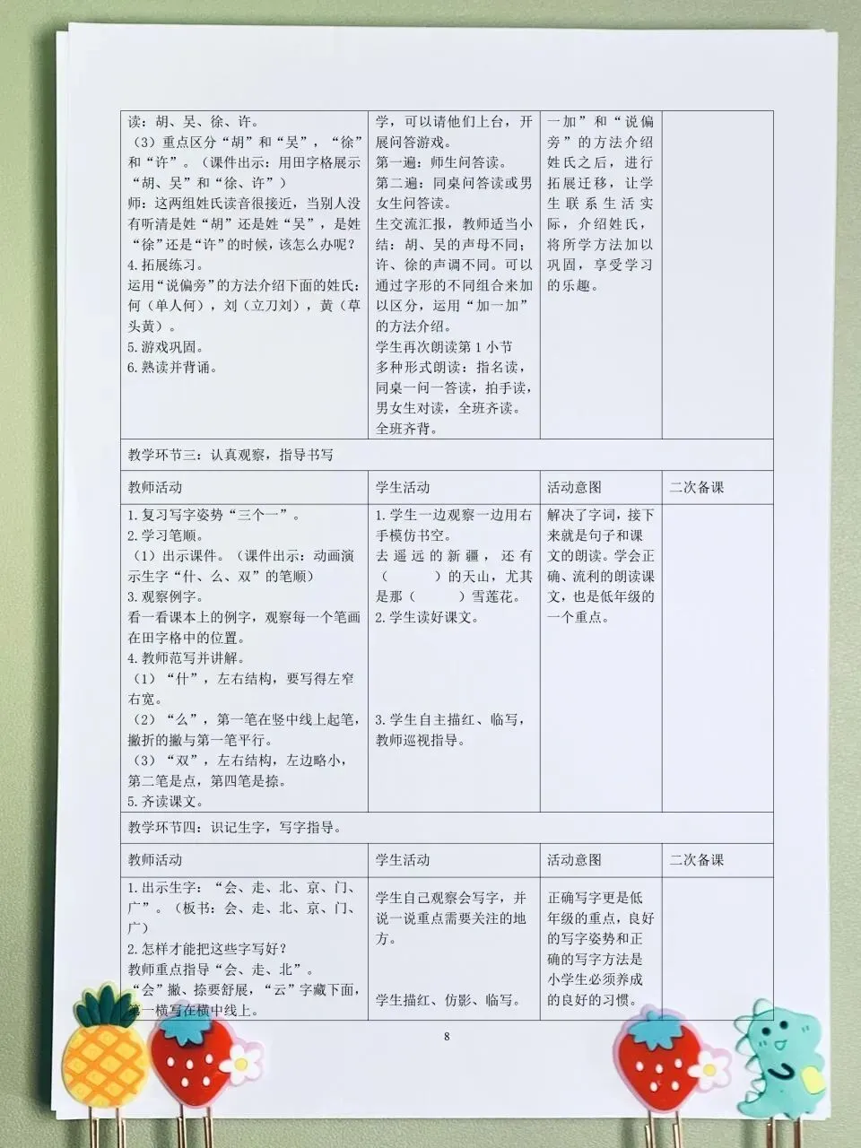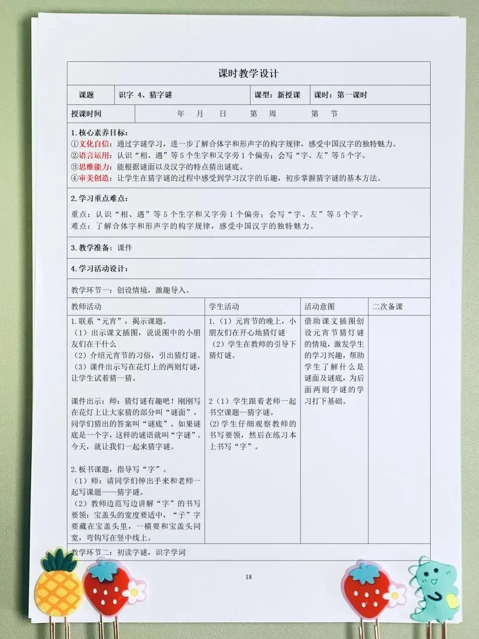 26春 语文一下 核心素养表格教案(含师生活动、二次备课栏)