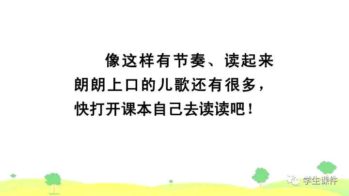 当前位置:首页>课件>PPT课件 快乐读书吧《读读童谣和儿歌》 (一年级语文下册)