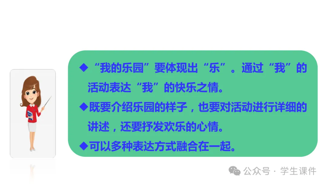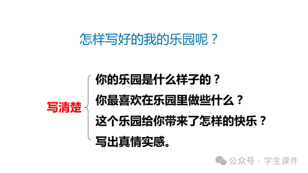 当前位置:首页>课件>PPT课件 习作《我的乐园》(四年级语文下册)
