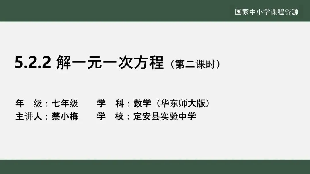 当前位置:首页>课件>【教学课件】(新教材)华师大版初中数学七下 《5.2.2 解一元一次方程》(第二课时)