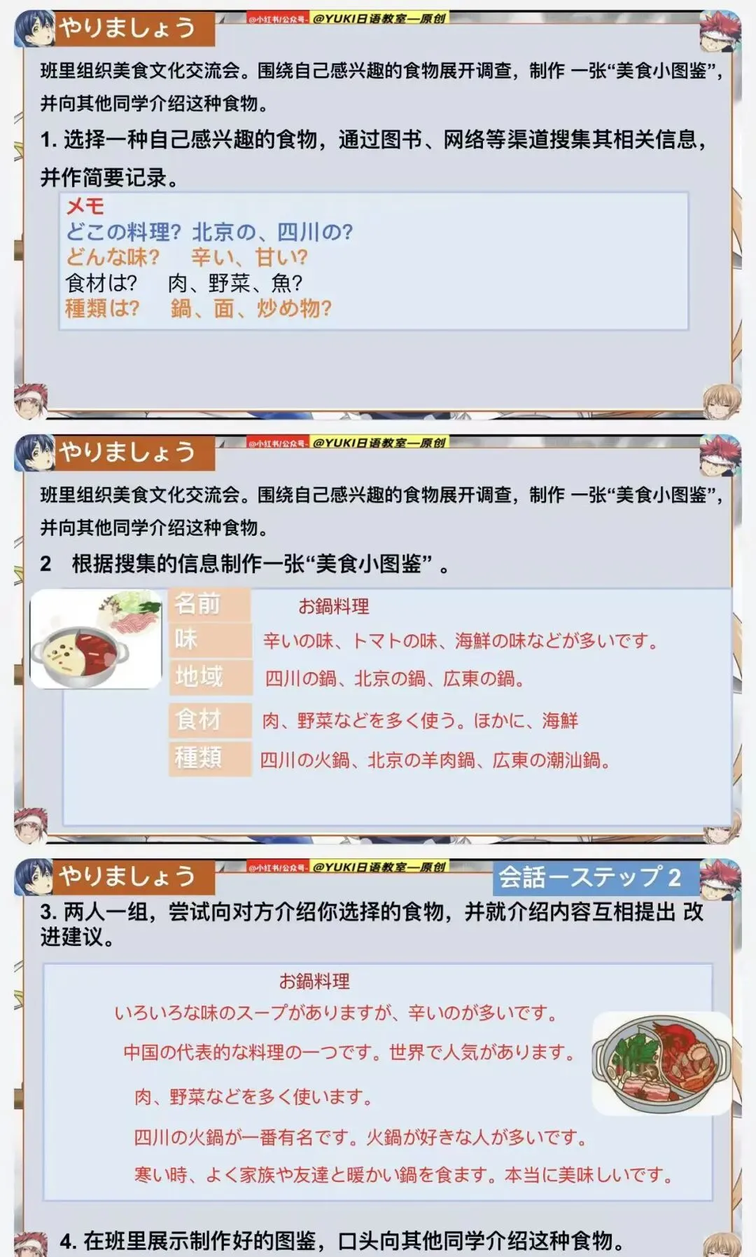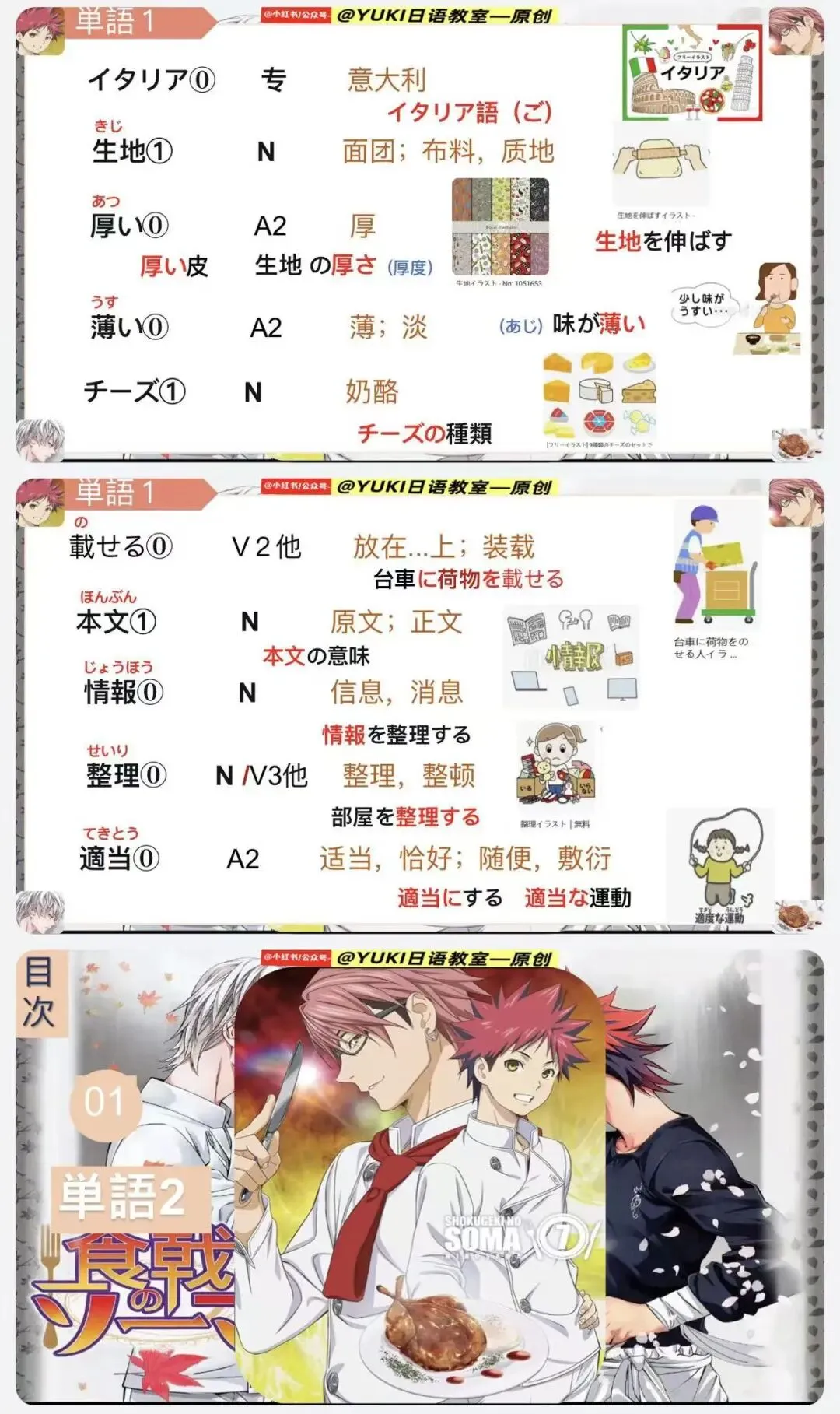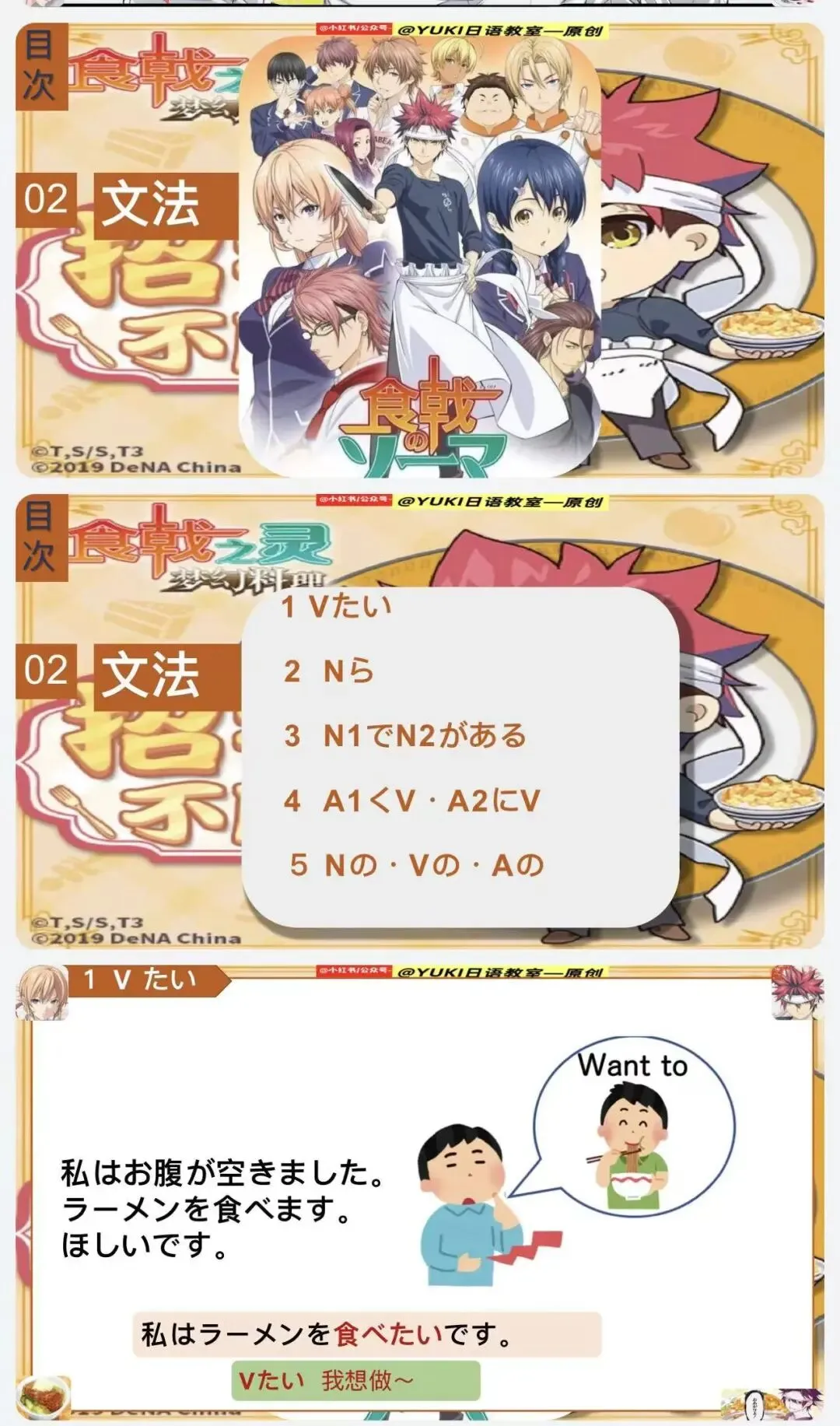 新版人教日语八年级动漫版课件第2课(食戟之灵-原创动漫版课件:)-本课件为原创课件由-@公众号--YUKI日语教室 制作。本课件未授权给任何人进行商用,二次引流和销售,盗版课件属于违法侵权行为,请大家谨防假冒,谢谢支持原创日语资料的制作!
