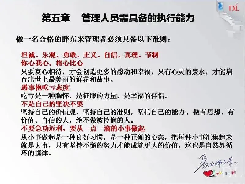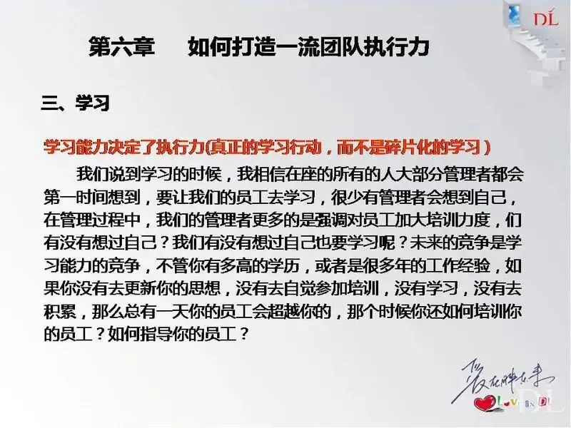 导读:今天给大家带来胖东来管理层管理技能课程-《执行力》,内容包括:1、执行力知识概述;2、执行力缺失原因;3、怎样提升执行力;4、执行力理念/原则;5、管理人员需具备的执行能力;6、如何打造一流团队执行力。