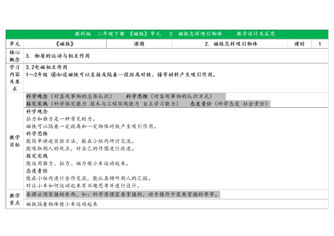 教科版科学二年级下册核心素养教案+课件PPT(2026春)