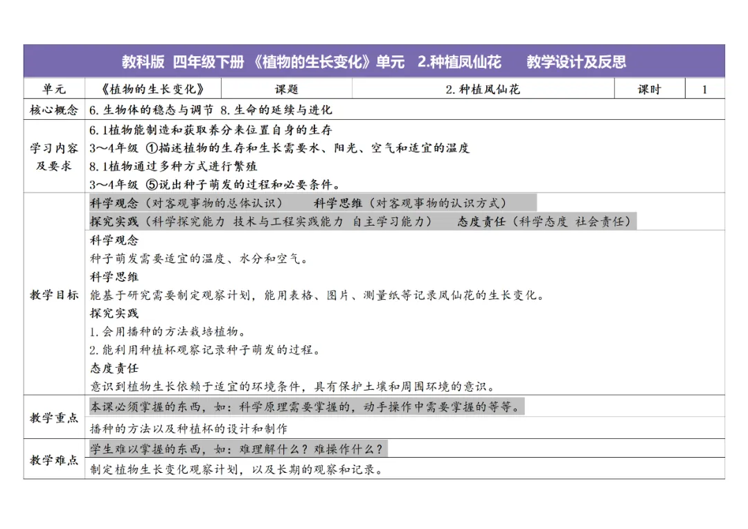教科版科四年级下册核心素养教案+课件PPT(2026春)