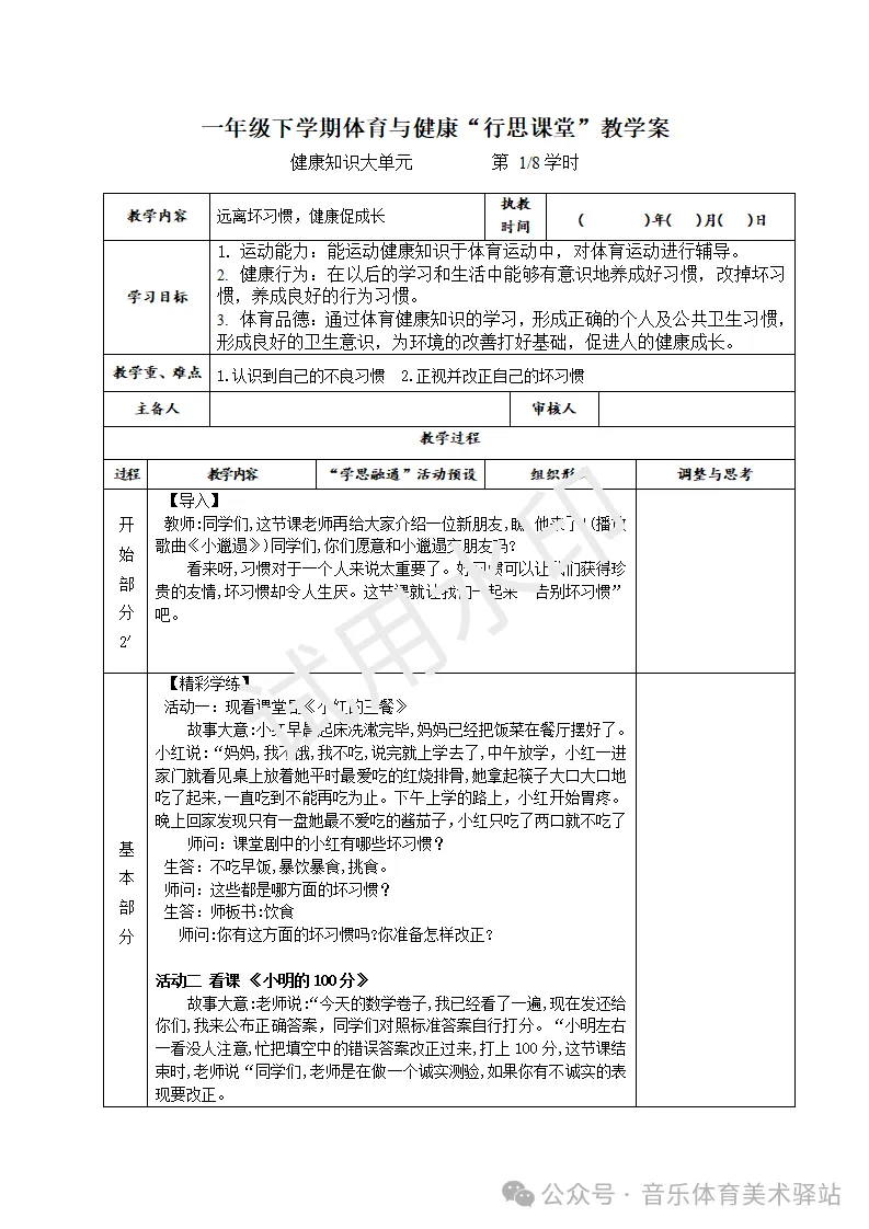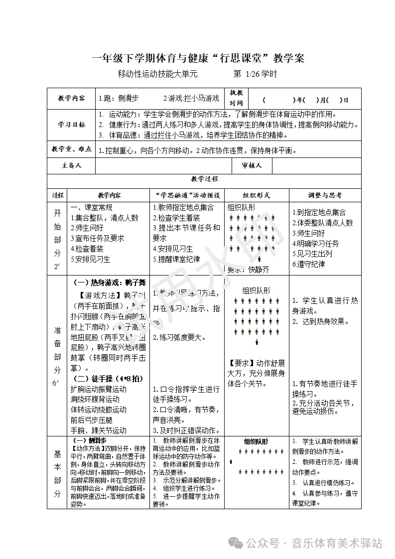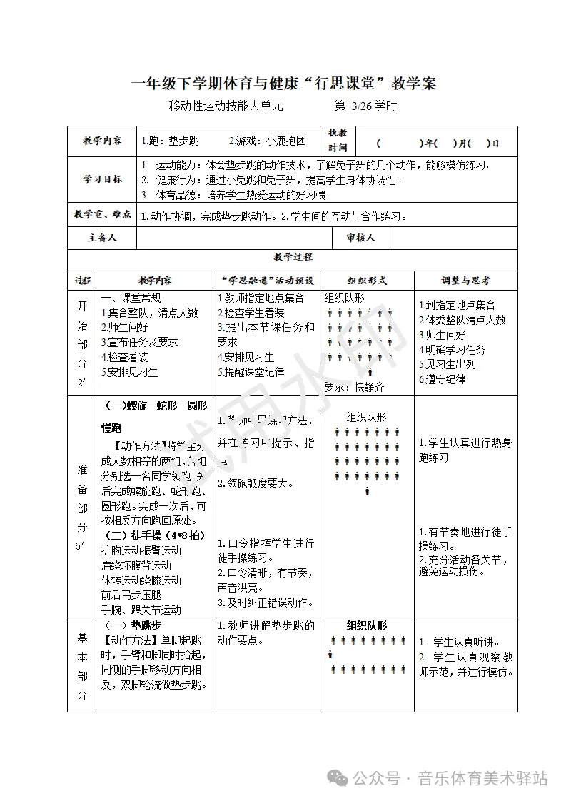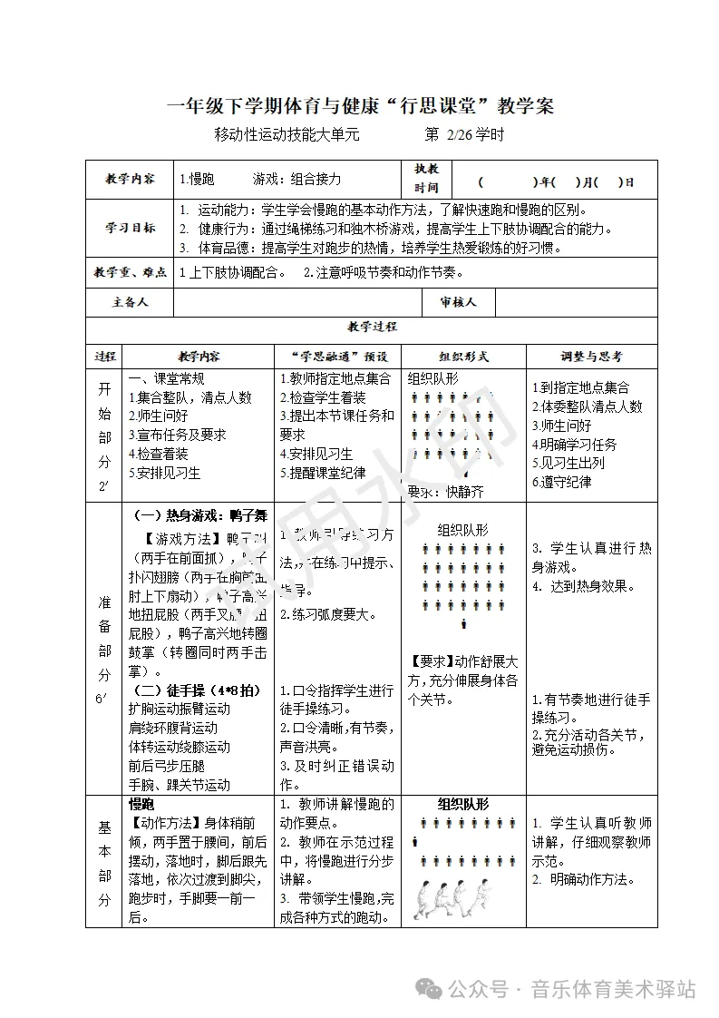2026春季新课标体育与健康一年级下册教案