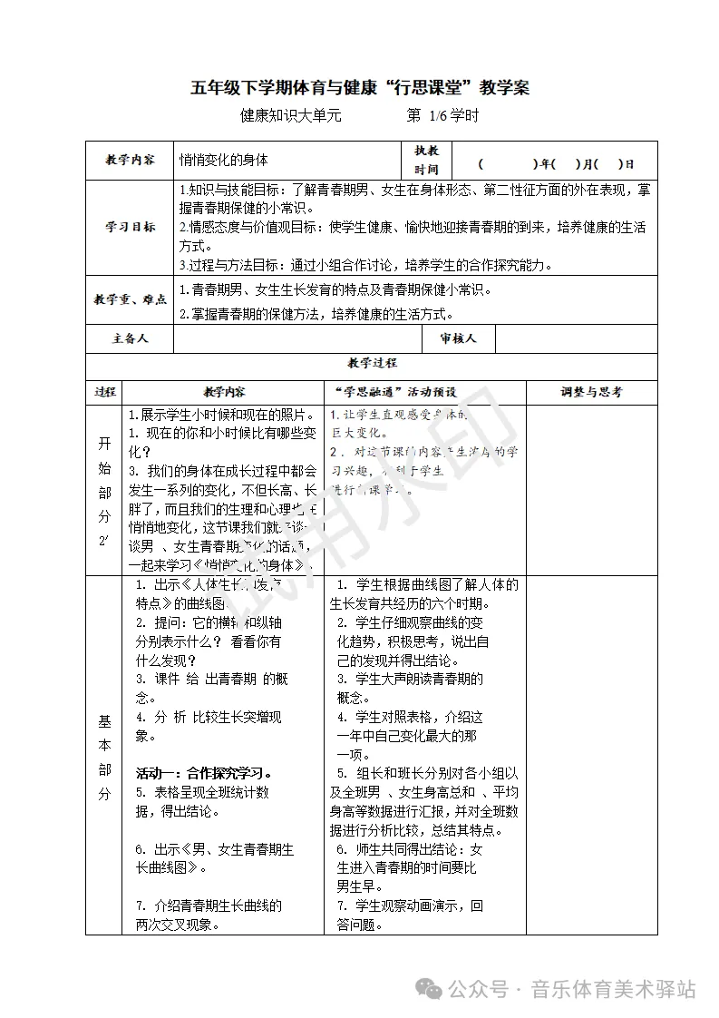 >2026年新课标体育与健康五年级下册教案