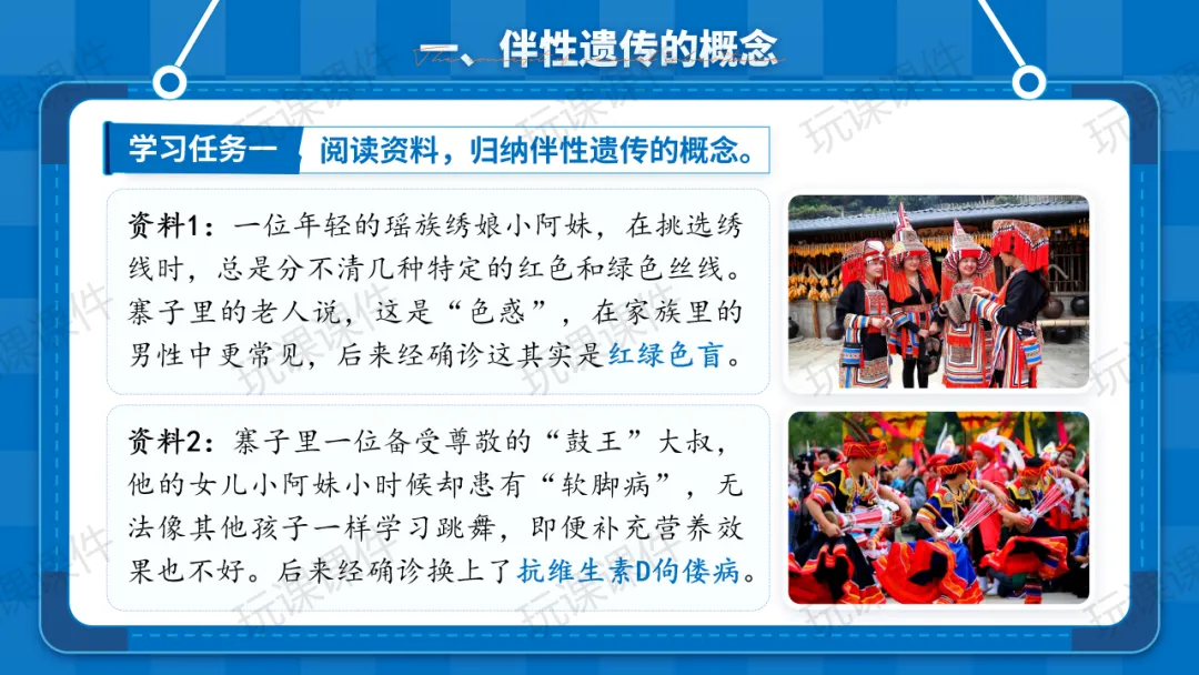 以“瑶族文化”为情境来讲《伴性遗传》课件,从真实情境中掌握知识,太生动了!丨玩课
