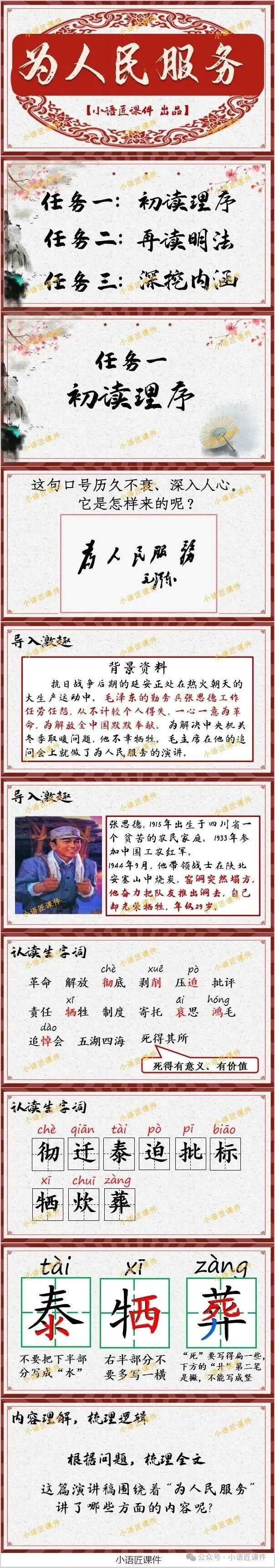 大家好,我是小语匠课件!今天给大家分享六年级下册《为人民服务》的独家课件。