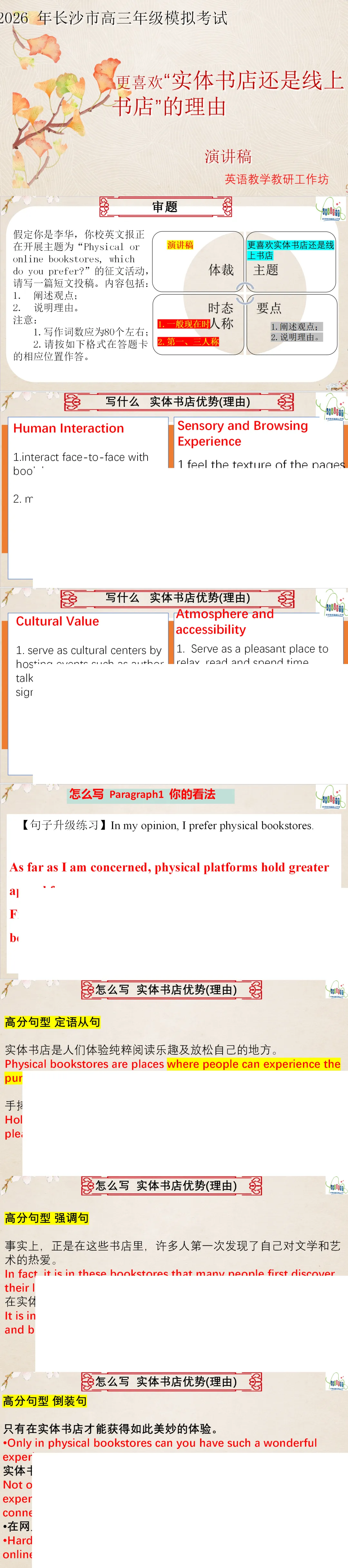 今日分享:【应用文课件】2026年长沙市高三年级模拟考试::更喜欢“实体书店还是线上书店”的理由