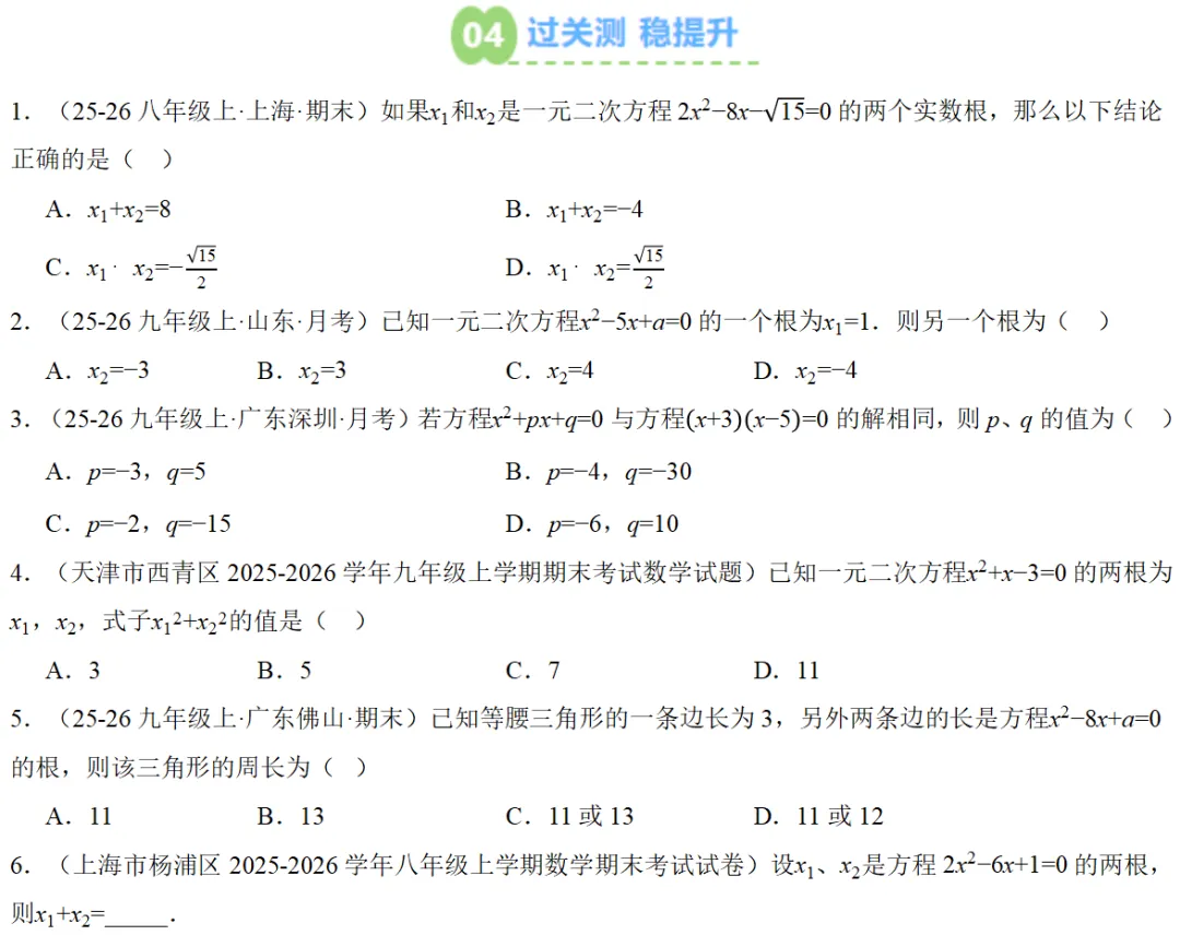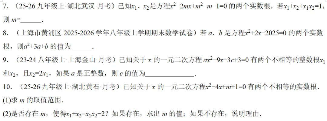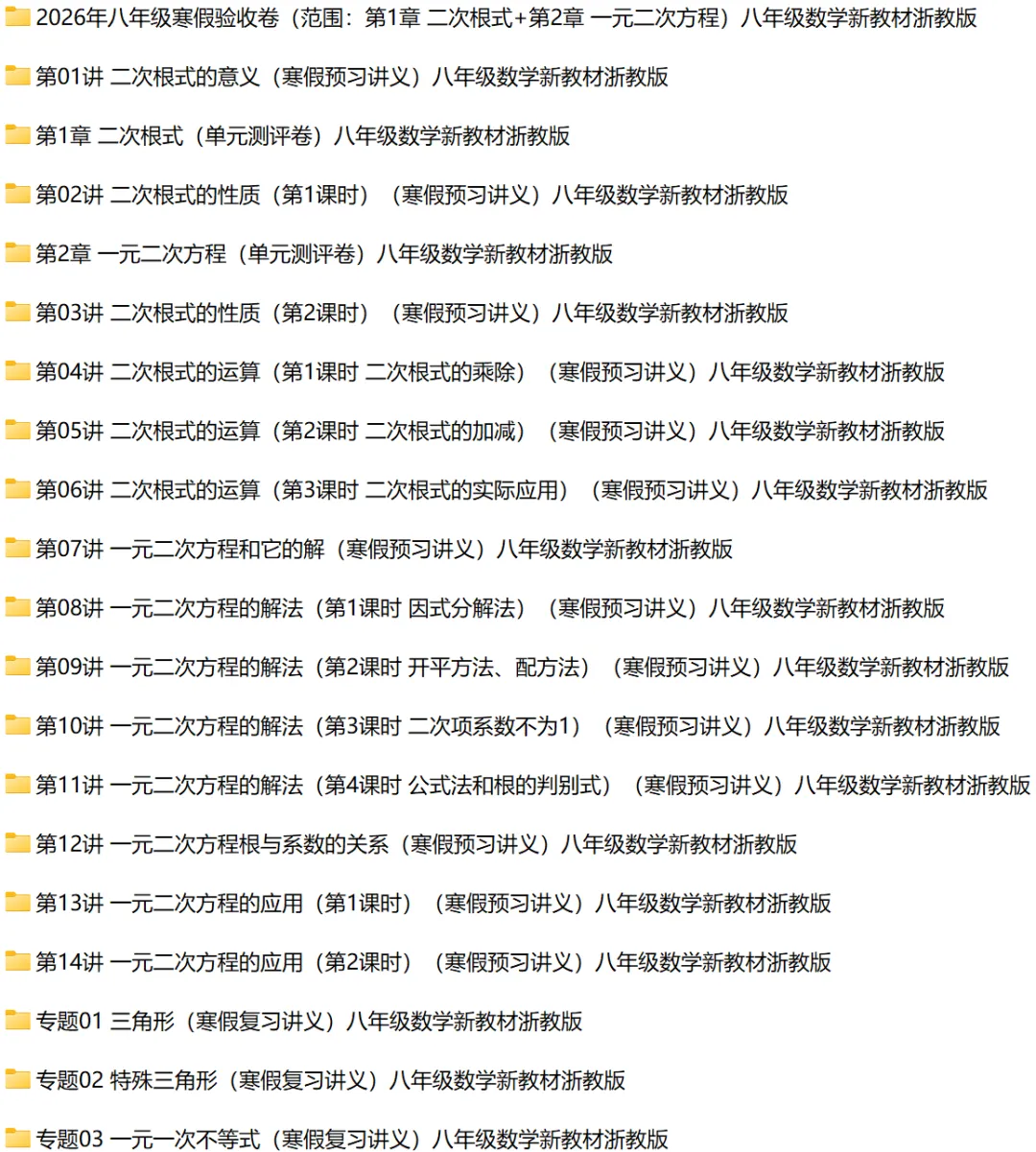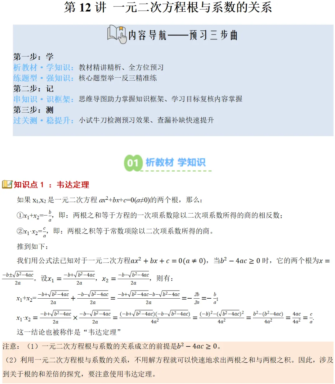 >2026年浙教版八年级数学寒假预习讲义|一元二次方程根与系数的关系