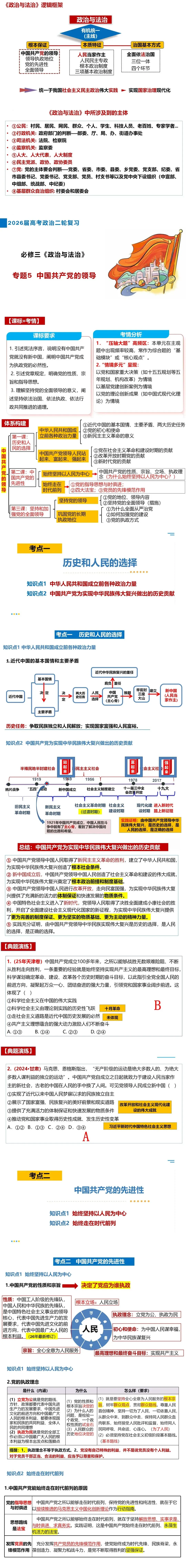 >26届高三二轮复习课件——专题5 中国共产党的领导