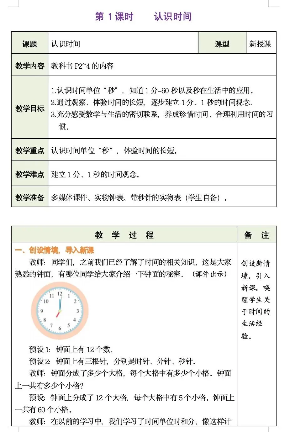 >二下数学|时间在哪里:第一课时认识时间教案