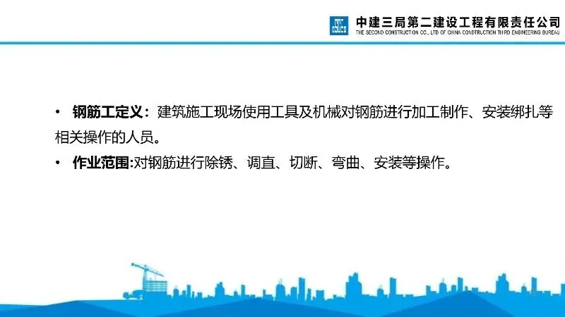 (二)核心目标。通过强化培训,规范钢筋工作业行为,提升作业人员的安全意识和操作技能,减少和杜绝“三违”现象,推动施工现场作业行为标准化。