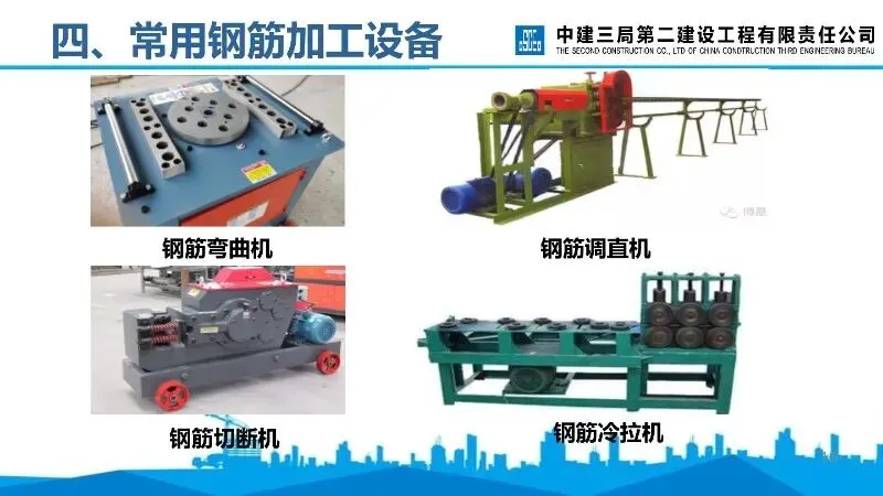 常用设备介绍:明确钢筋调直机、弯曲机、冷拉机、切断机等核心设备的基础信息。