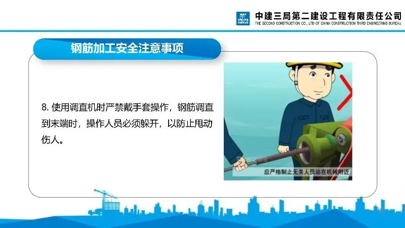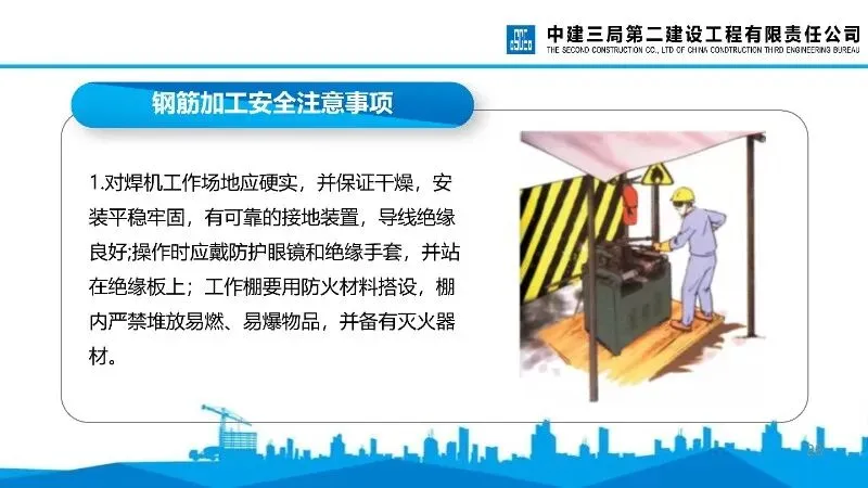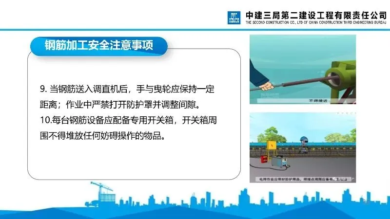 钢筋加工安全:涵盖对焊机、冷拉卷扬机、切断机、调直机等设备的操作安全要求,明确防护用品佩戴、危险区域隔离、机械维护等要点。
