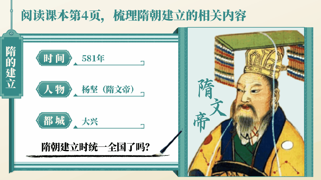 不仅可以激起学生兴趣,还可以通过萧琮联想之前所学,回顾北朝的政权更替,引出本课的知识点隋朝。