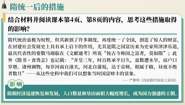 隋朝统一全国是较重要的知识点,通过隋朝吞并西梁引出隋朝灭陈统一全国,使学生了解隋朝的统一。