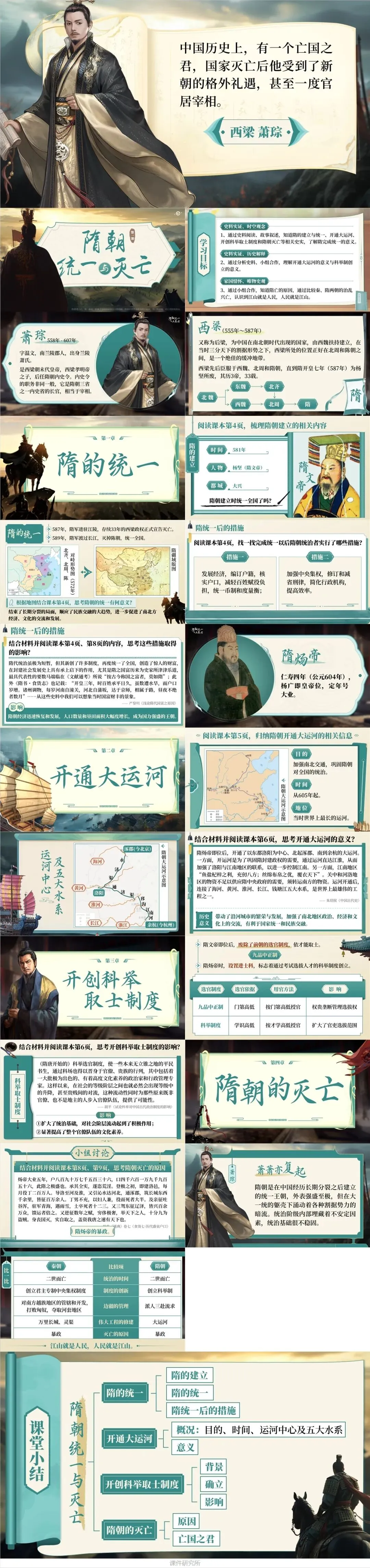 这一课我们采用了后梁朝末代皇帝,隋炀帝皇后萧氏的兄弟萧琮为主线,串联起整节课的知识点。