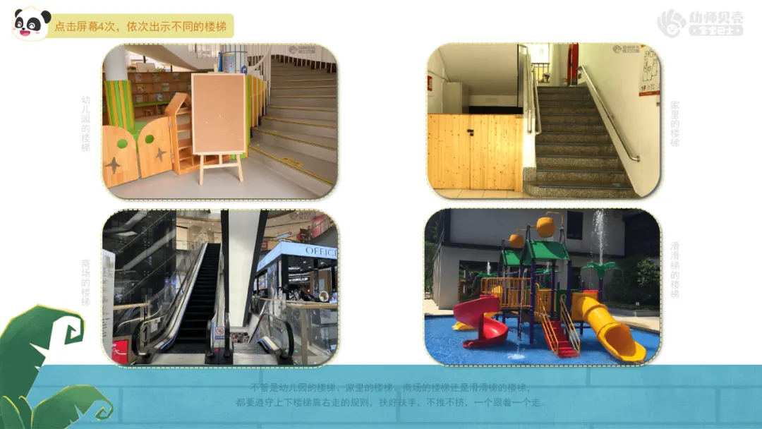 小结:不管是幼儿园的楼梯、家里的楼梯、商场的楼梯还是滑滑梯的楼梯,都要遵守上下楼梯靠右走的规则,扶好扶手,不推不挤,一个跟着一个走。