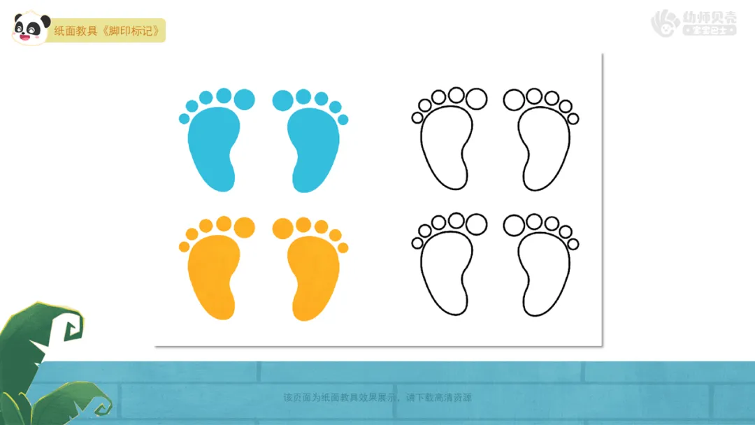 1.幼儿观察脚印标记并回顾安全上下楼梯的方法。