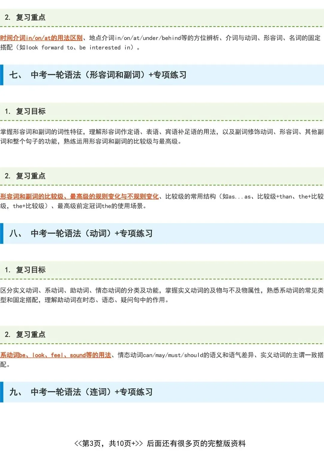 寒假课程规划 初三寒假: 语法一轮复习课 + 提分专项课 + 入学考试 语法一轮复习课:语法专项 + 讲练结合 + 歌曲链接 + 课后过关 提分专项课:阅读理解 + 阅读表达 + 五选四 + 完形填空 + 写作 温馨提示:每次课前配有入门测试 初三寒假班(15次课) 1.中考一轮语法(名词)+ 阅读理解专项课一 2.中考一轮语法(代词)+ 阅读理解专项课二 3.中考一轮语法(形容词、副词)+ 阅读理解专项课三 4.中考一轮语法(比较级、最高级)+ 阅读理解专项课四 5.中考一轮语法(词性转换)+ 阅读理解专项课五 6.中考一轮语法(动词时态一)+ 阅读理解专项课六 7.中考一轮语法(动词时态二)+ 完形填空专项课一 8.中考一轮语法(主谓一致)+ 完形填空专项课二 9.中考一轮语法(动词语态)+ 完形填空专项课三 10.中考一轮语法(非谓语动词)+ 五选五、四课一 11.中考一轮语法(动词综合)+ 五选五、四课二 12.中考一轮语法(冠词)+ 阅读表达专项课一 13.中考一轮语法(介词)+ 阅读表达专项课二 14.中考一轮语法(连词)+ ...