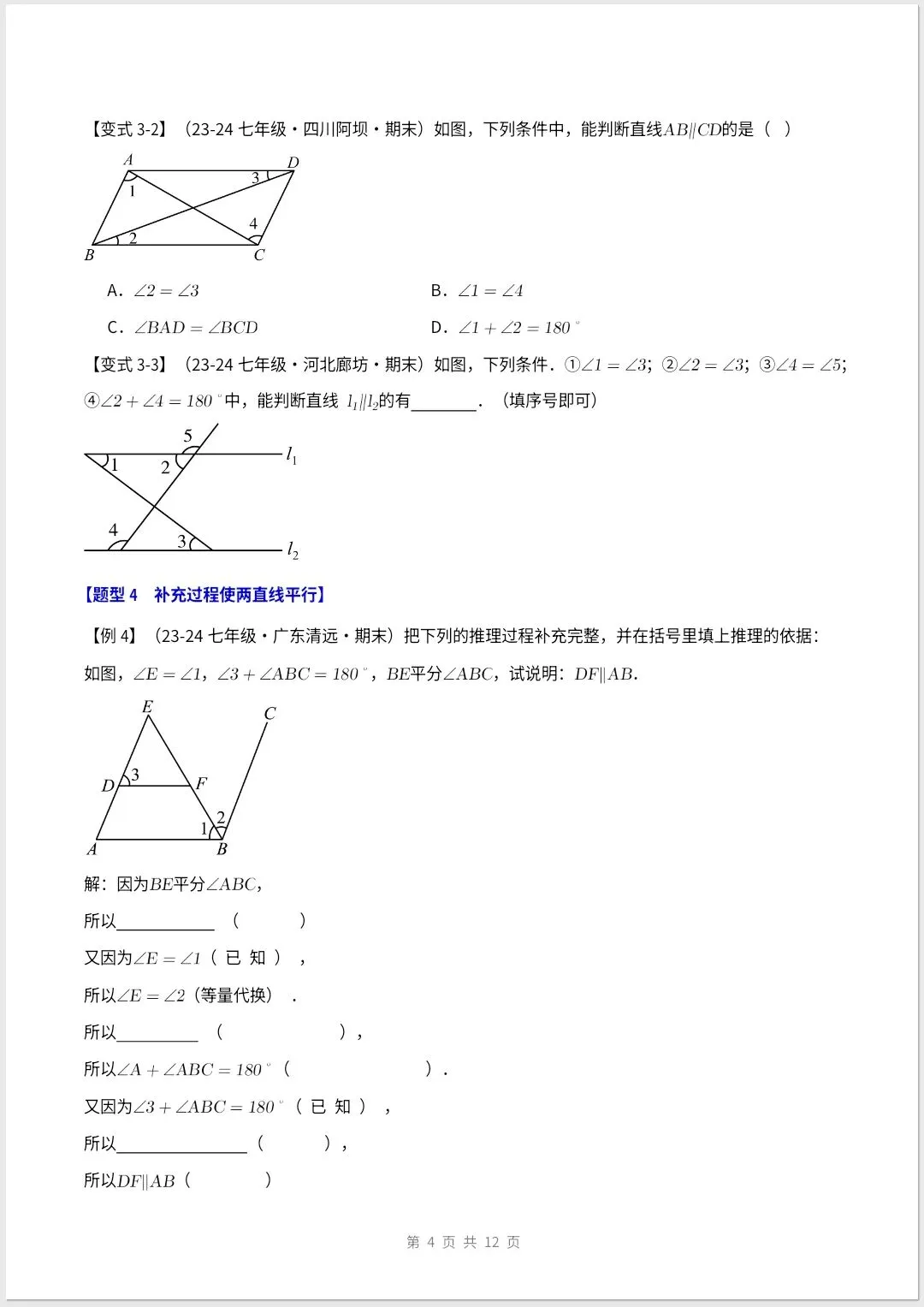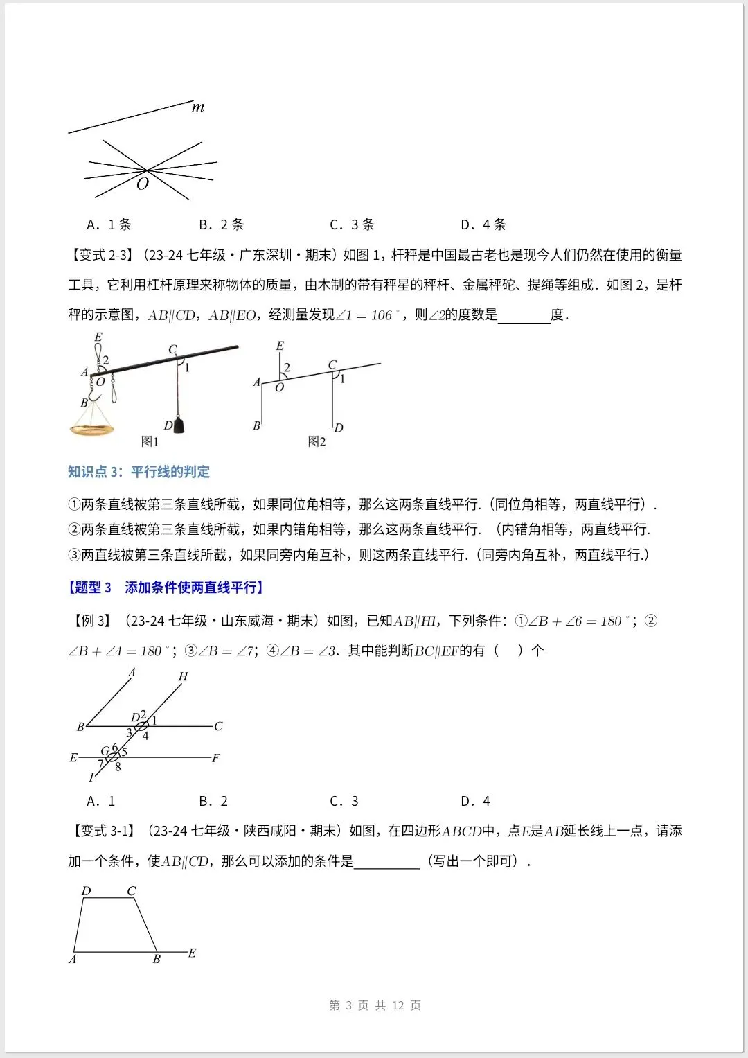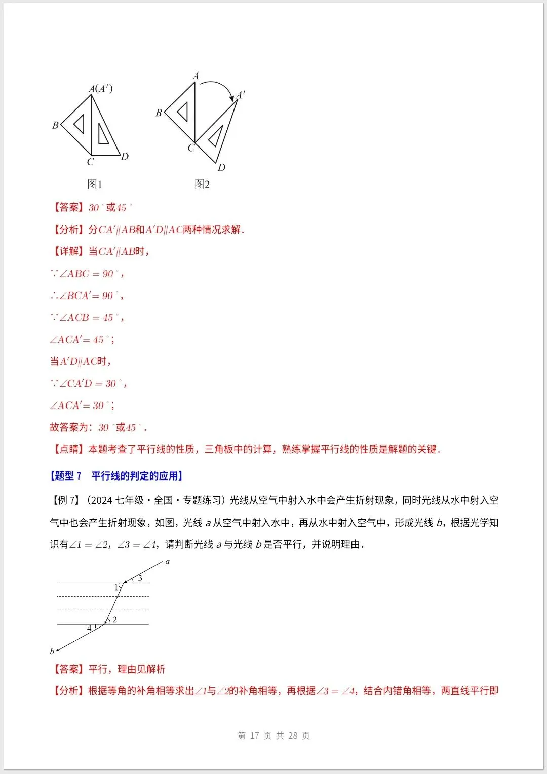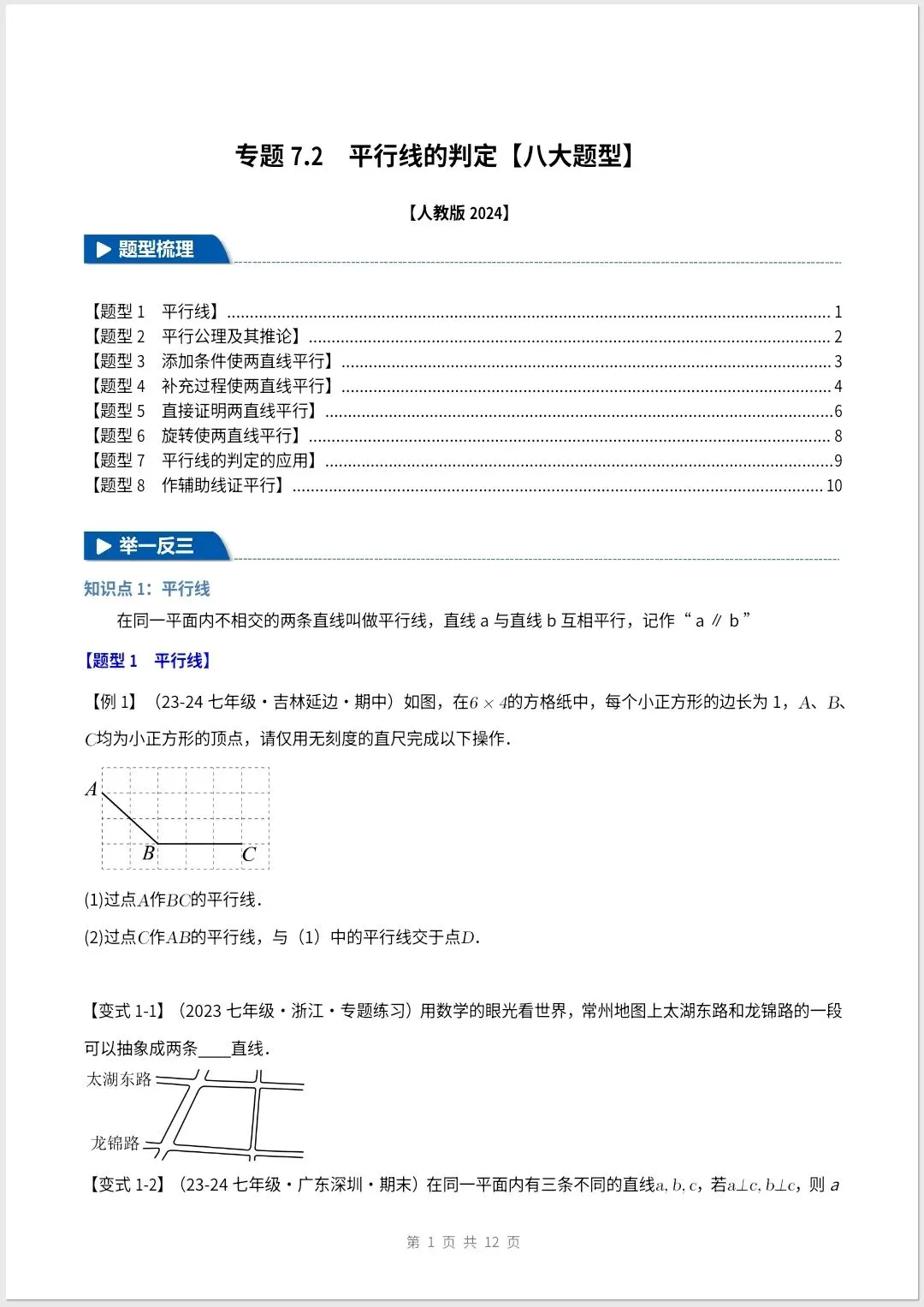 今日分享:2026新版七下数学同步讲义平行线的判定(八大题型)习题+解析,有电子版可下载打印!