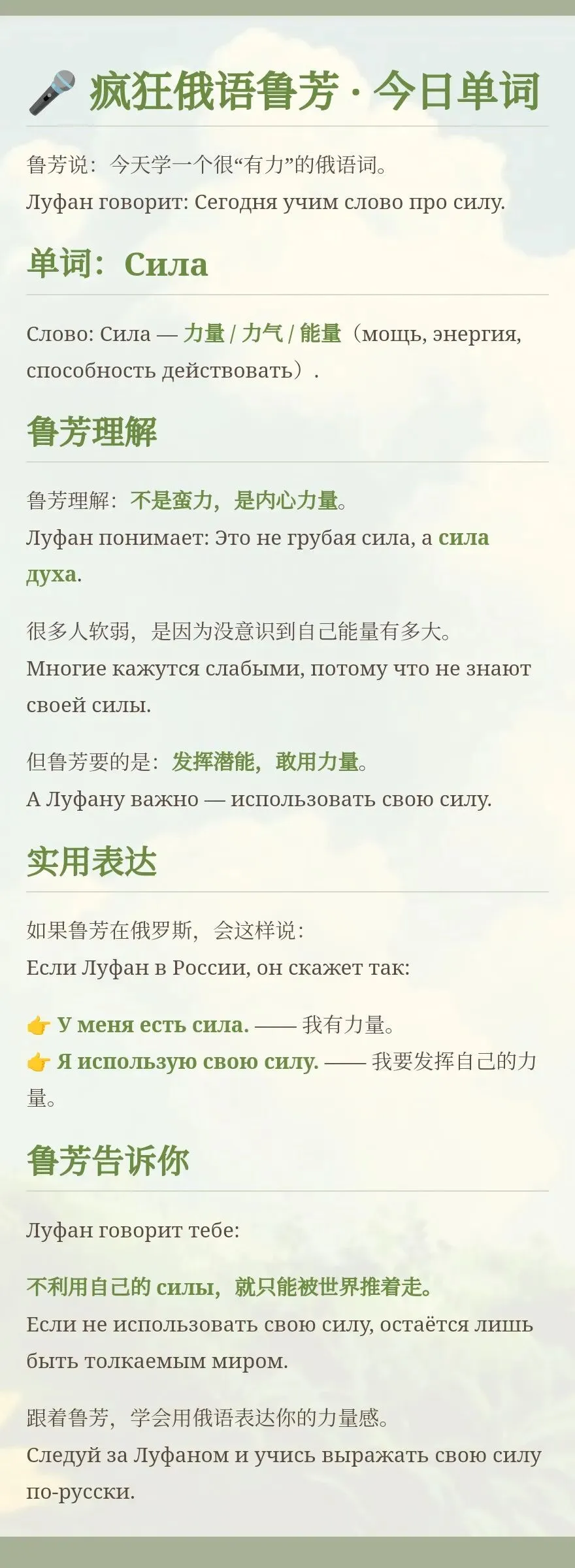 鲁芳说:今天学一个很“有力”的俄语词。