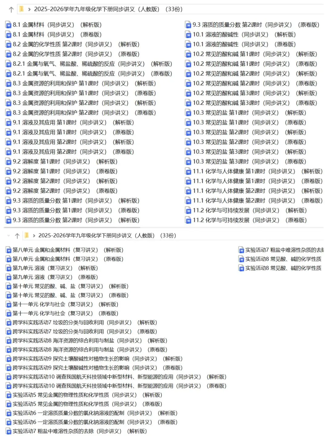 2026年九下化学人教版:同步讲义33份含答案解析 | 完整word版文档可下载打印