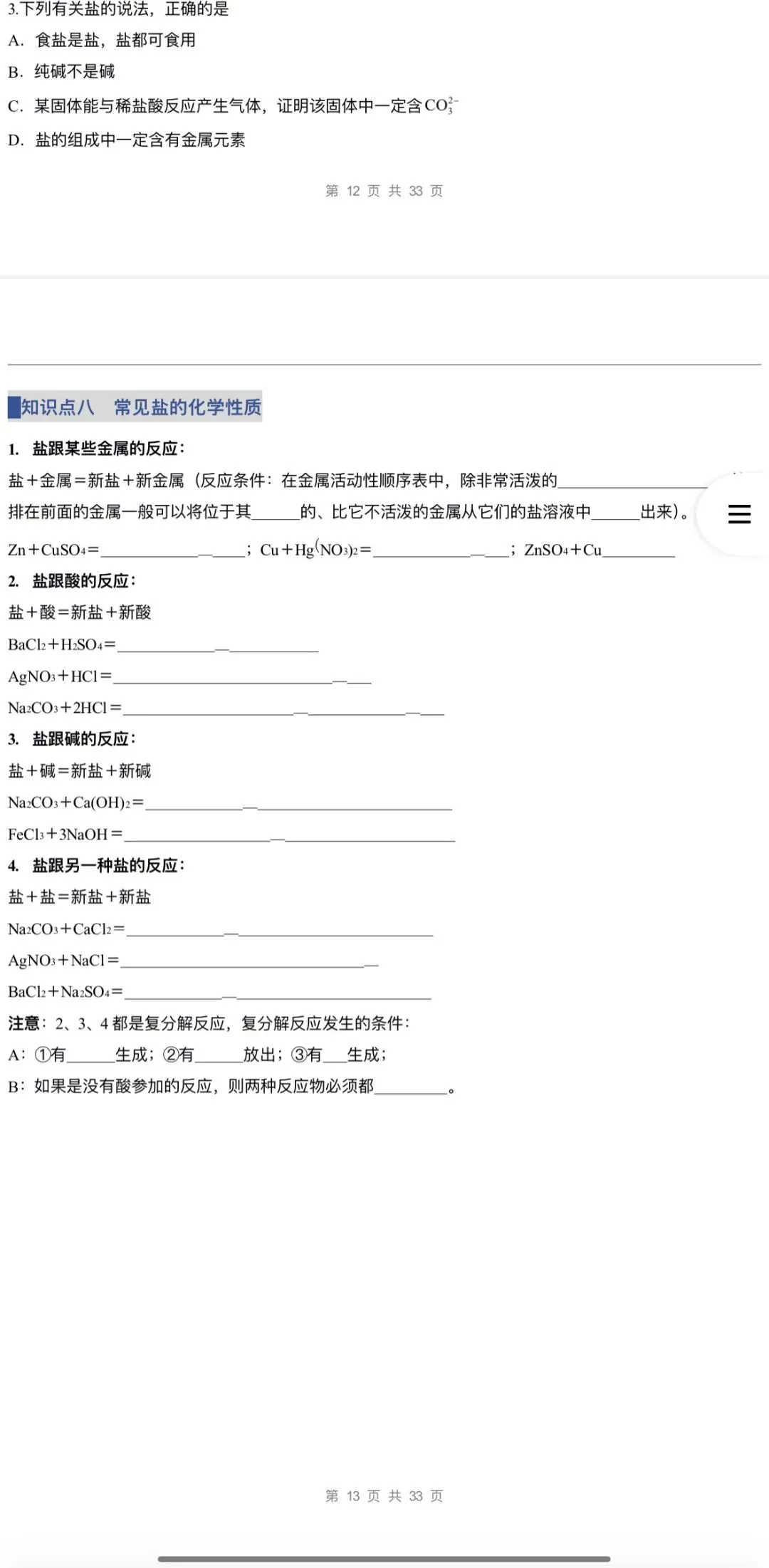 >2026年九下化学人教版:同步讲义33份含答案解析 | 完整word版文档可下载打印