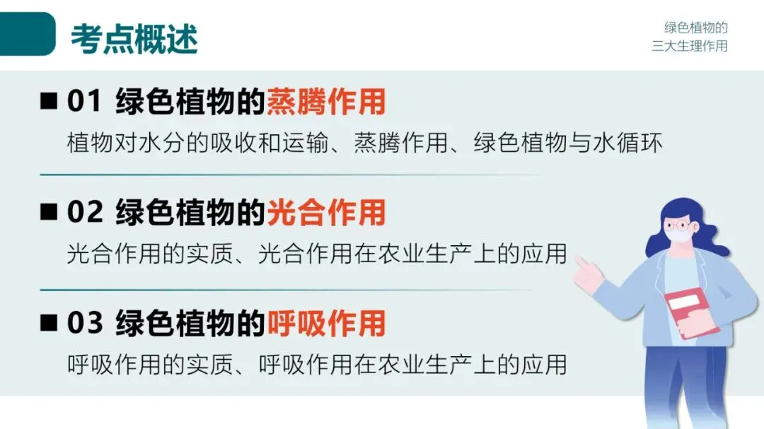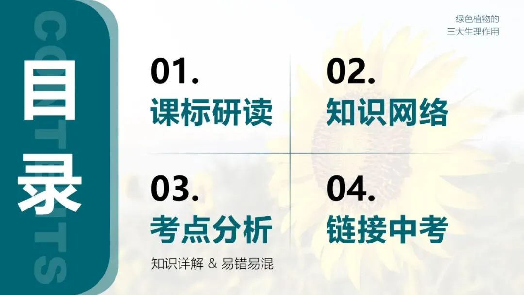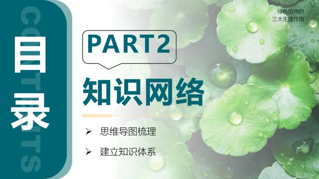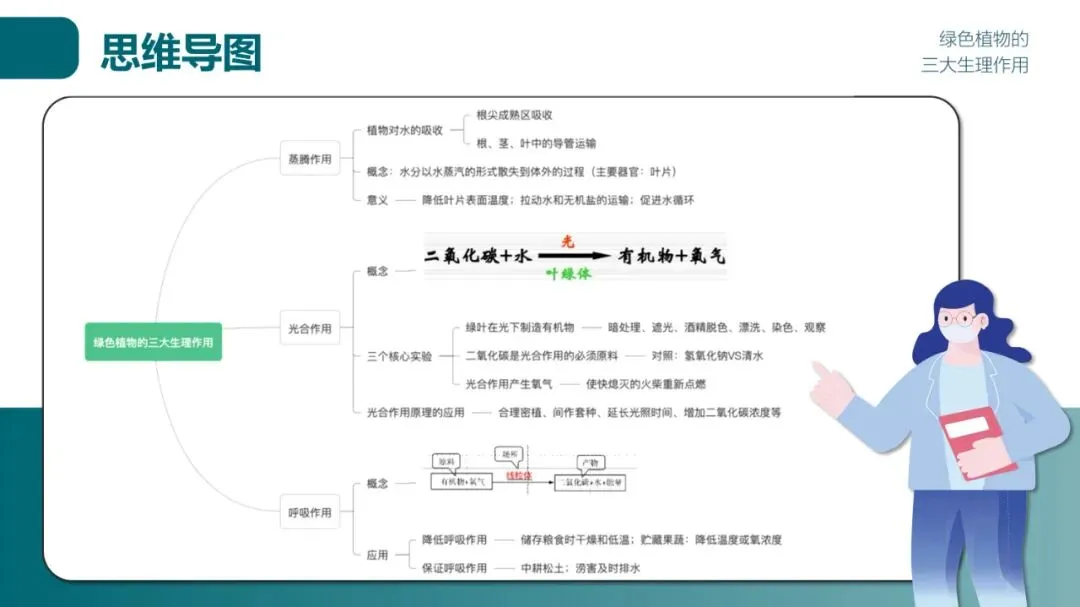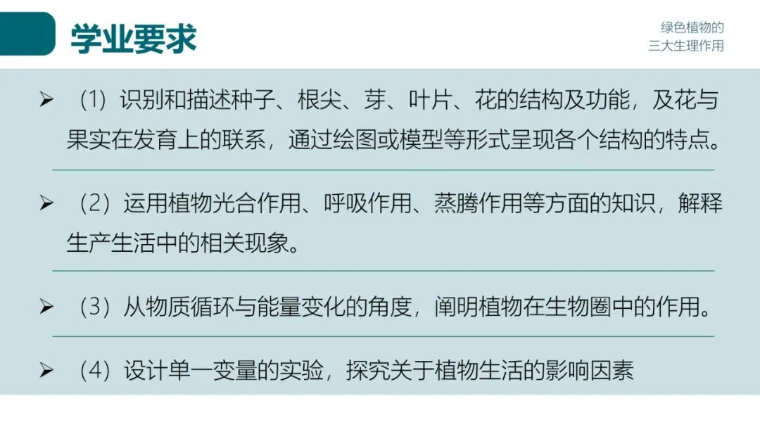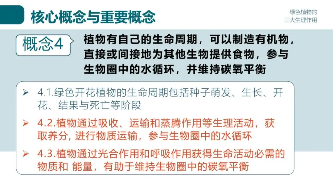 概念4植物有自己的生命周期,可以制造有机物,直接或间接地为其他生物提供食物,参与生物圈中的水循环,并维持碳氧平衡。