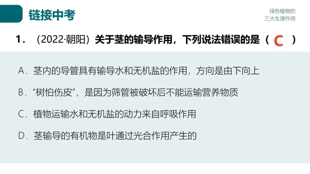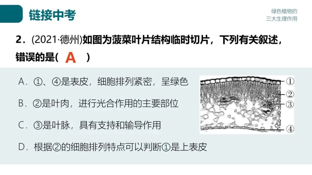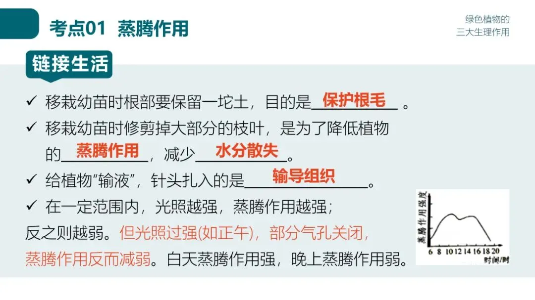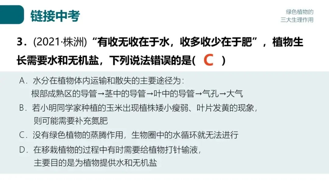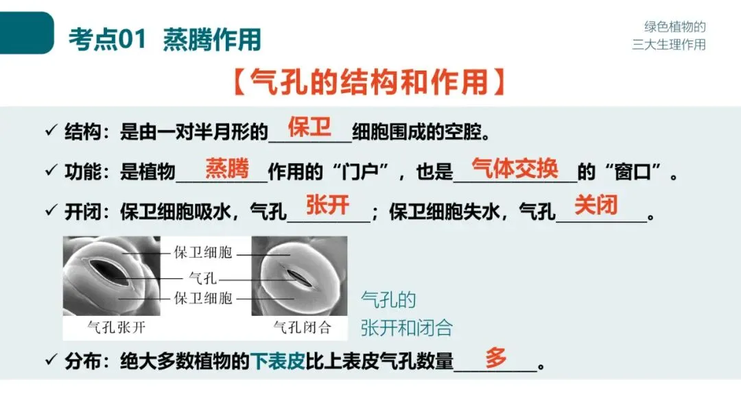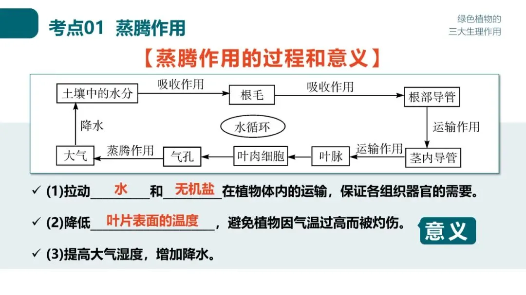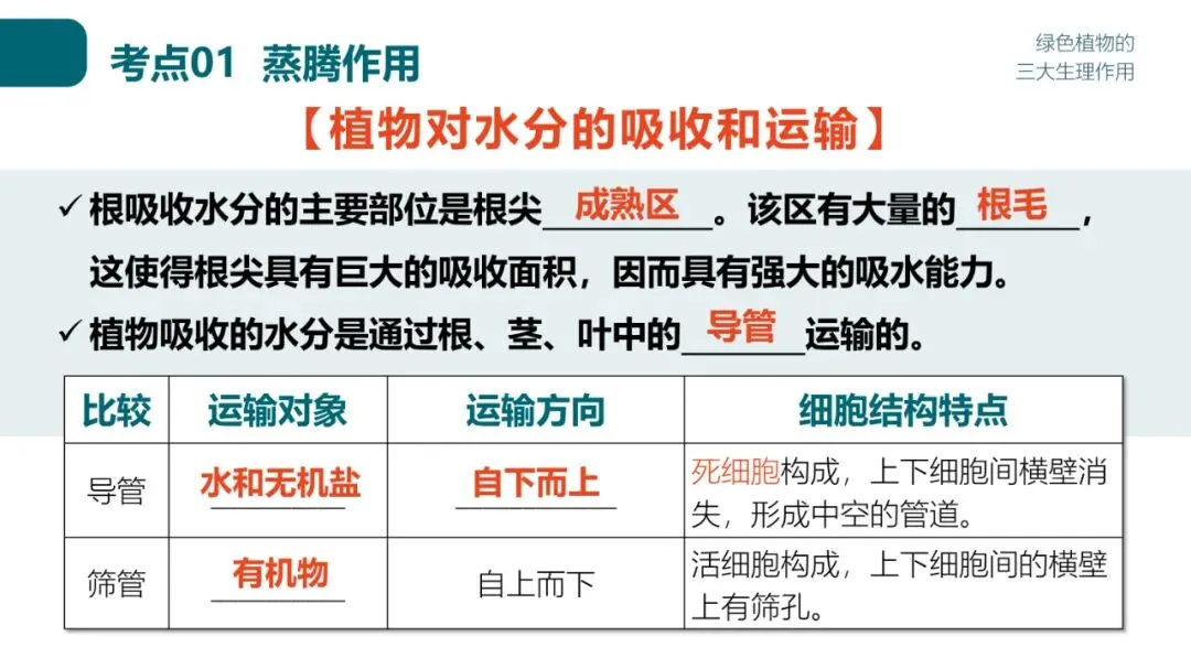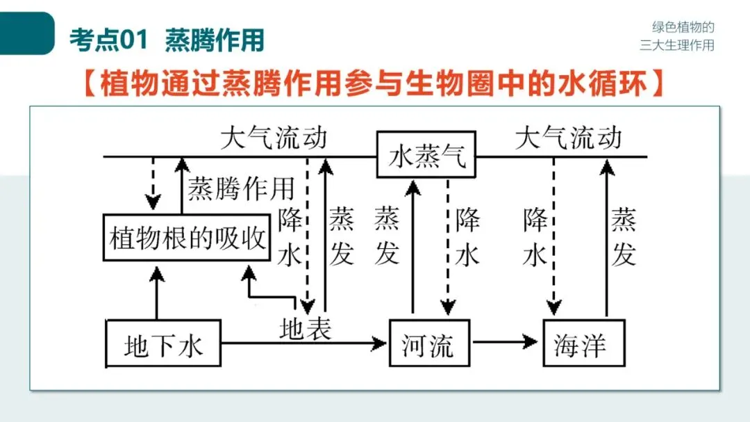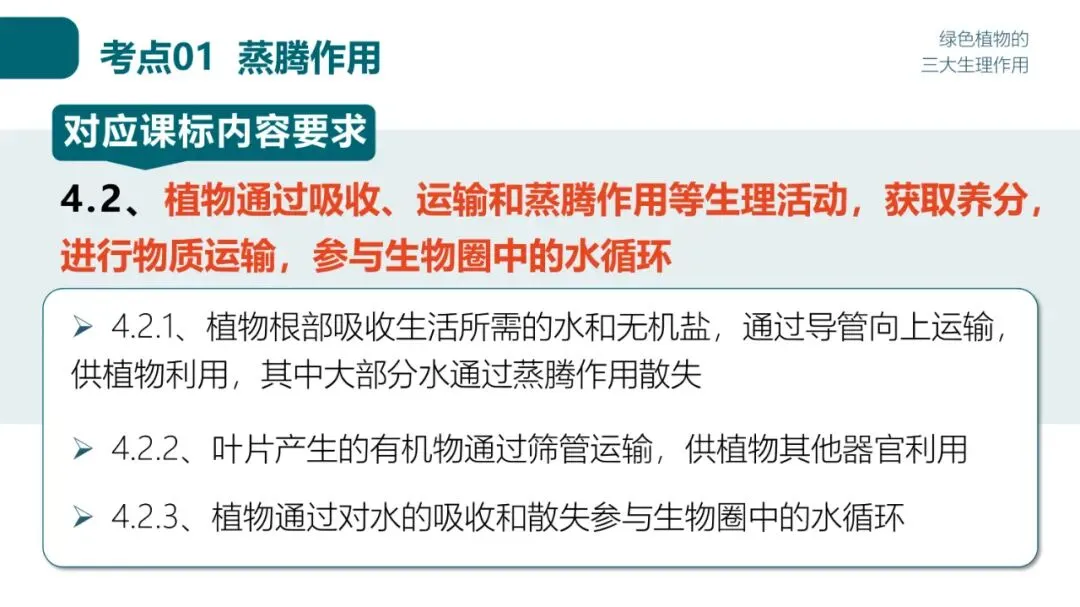 4.2植物通过吸收、运输和蒸腾作用等生理活动,获取养分,进行物质运输,参与生物圈中的水循环