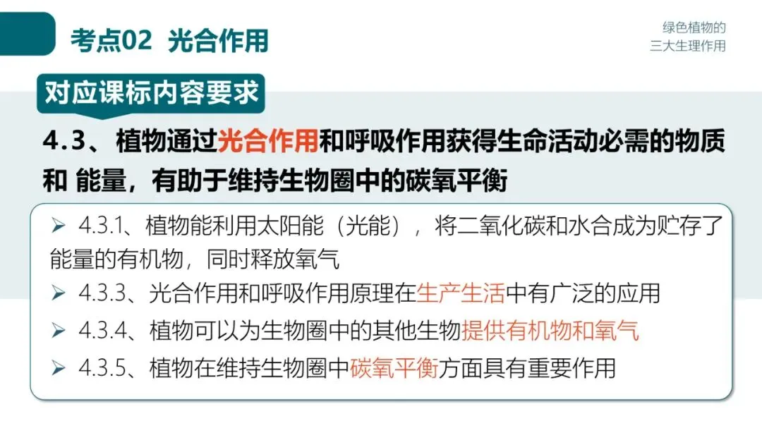 4.3植物通过光合作用和呼吸作用获得生命活动必需的物质和能量,有助于维持生物圈中的碳氧平衡
