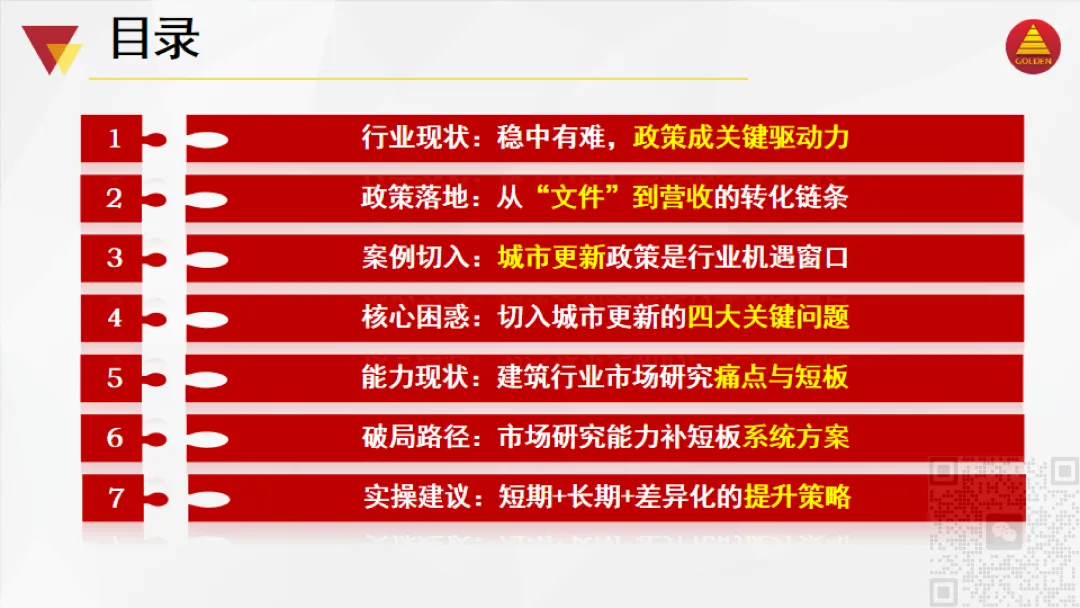 精准解读“十五五”宏观环境(PEST)与行业发展趋势,剖析城镇化、乡村振兴、新能源等五大发展机遇,明确长三角、大湾区、新疆等重点区域布局方向。针对房建、市政、基建、工业工程等核心领域,提供结构优化与价值提升策略,助你找准赛道、提前布局。
