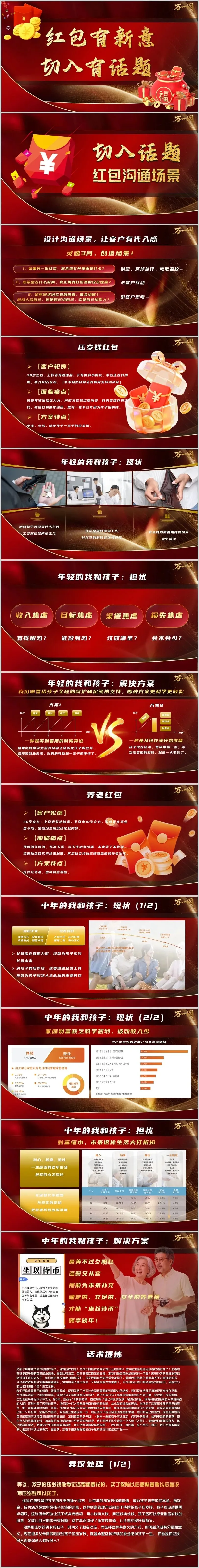 春节,是中国人情感联结最浓烈的节日。当长辈将红包塞进孩子手中,当“恭喜发财”的祝福此起彼伏,压岁钱早已超越“零钱”的范畴,成为代际关爱、文化传承与财富教育的载体。2026年马年将至,面对30+年轻父母“存不下钱”的焦虑、40+中产家庭“养老与育儿双压力”的困境,如何用一场有温度、有深度的压岁钱沟通,既守护孩子的财商启蒙,又为家庭未来埋下“确定性的种子”?本文将围绕“灵魂3问”话术、场景化设计与异议处理,拆解一套可落地的沟通方法论。