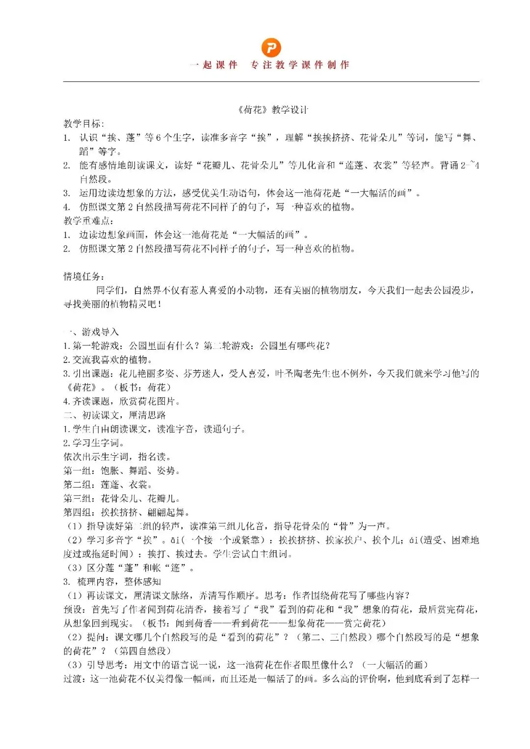 >三下第一单元《荷花》 | 教学课件+教案+逐字稿