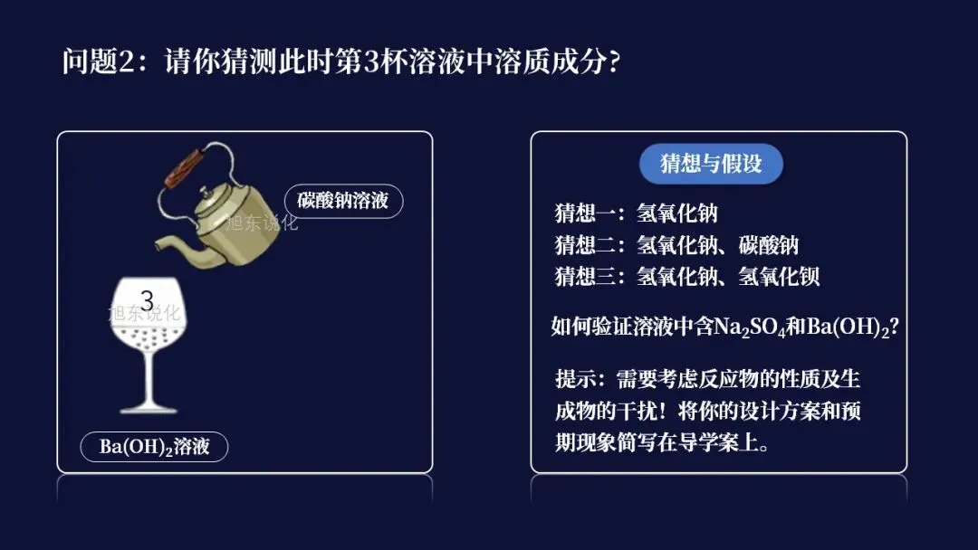【渡】咱们继续分析第三杯中溶液,同样请你回答该杯中溶质有几种可能?