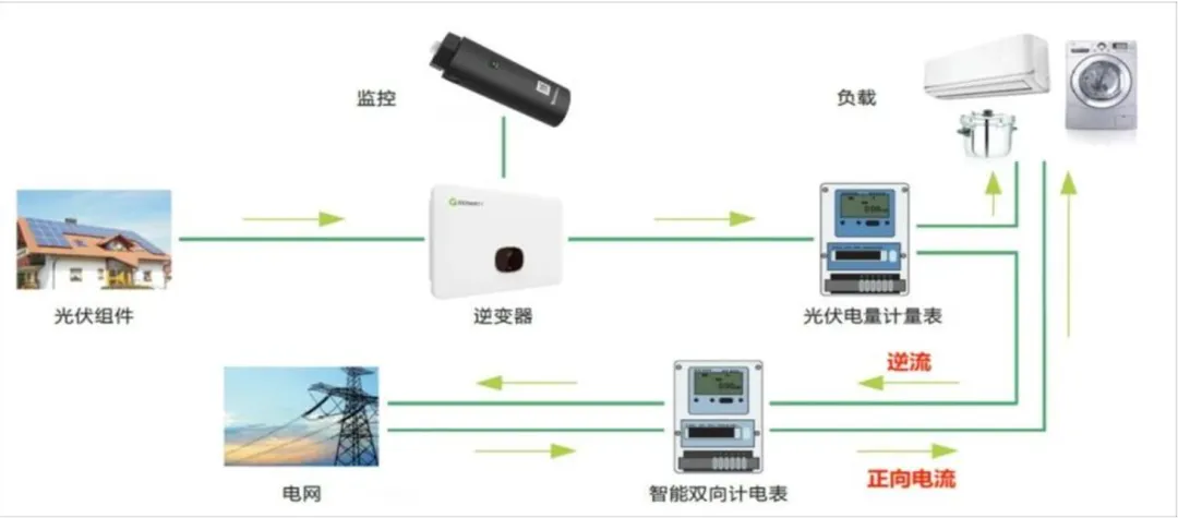 ● 逆流现象: 当光伏系统发电功率大于本地负载功率时,多余的电力会反向流入电网。
