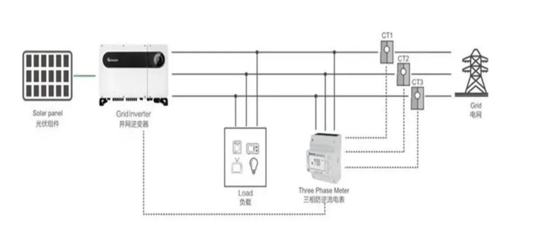 ● 防逆流定义: 防止光伏发电系统向电网反向送电的技术措施。