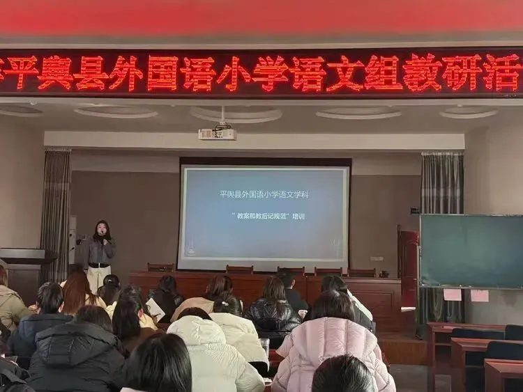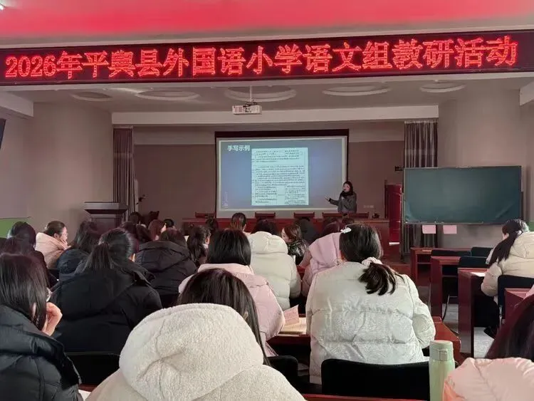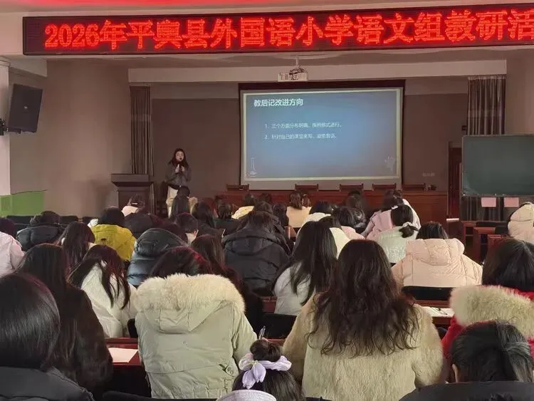 2026年2月3日,平舆县外国语小学语文学科组织开展“教案和教后记规范”专题培训。活动旨在统一教案和教后记标准,提升教师教研能力。全校语文教师全程参与,认真聆听讲解并记录要点。