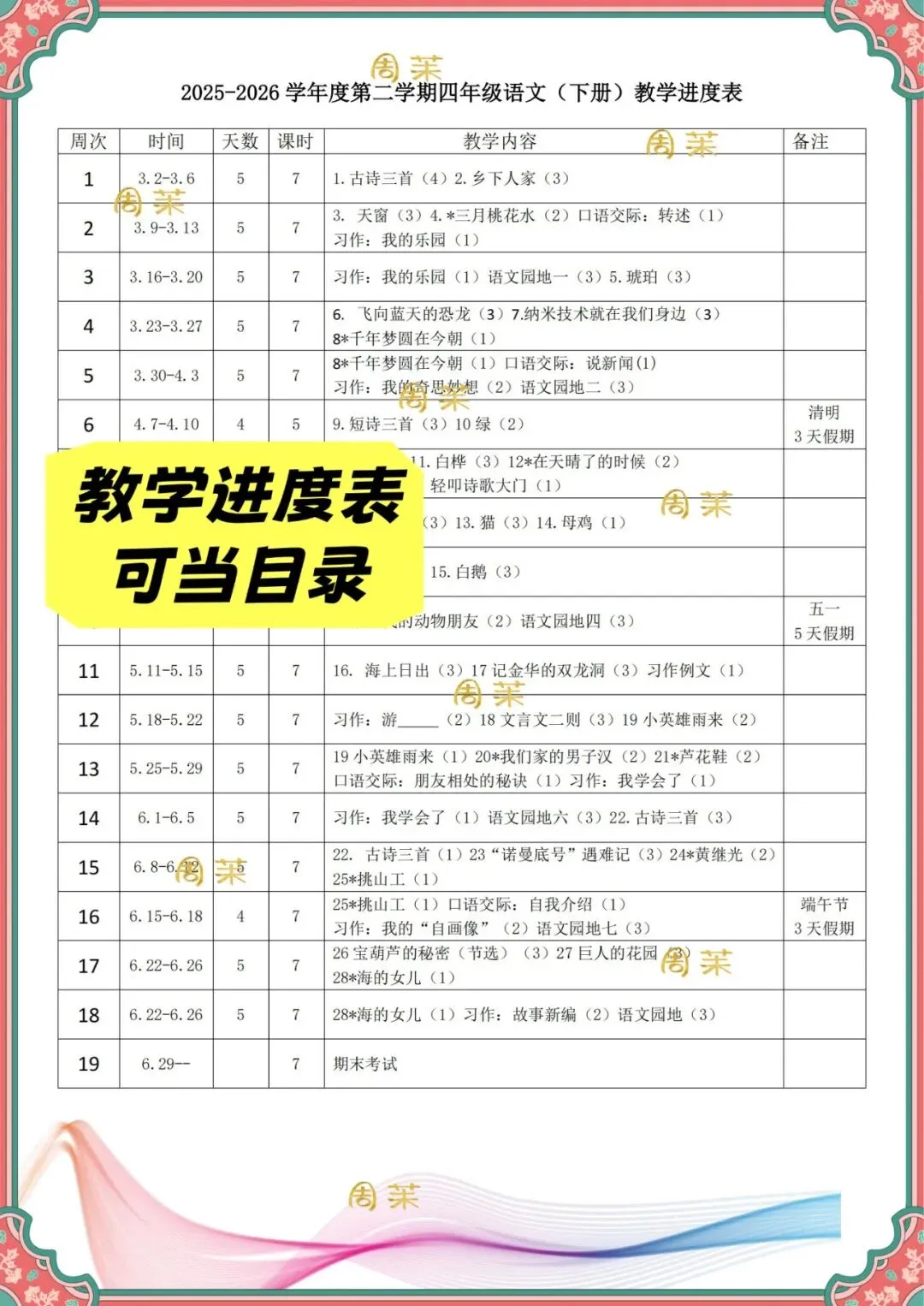 当前位置:首页>教案>26春新版四下语文核心素养教案