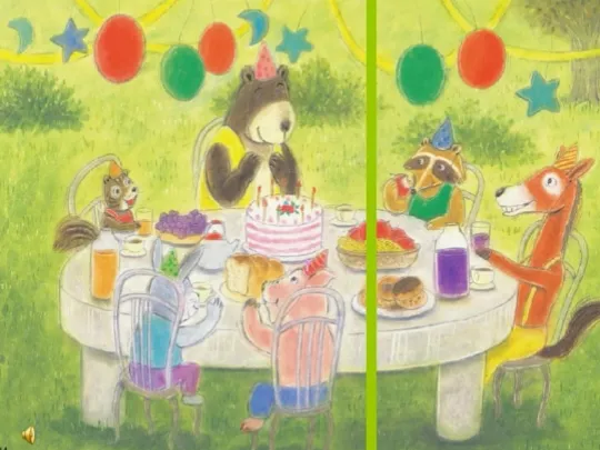 放生日歌,和小朋友们一起随着歌曲跳舞,为小熊庆祝生日!