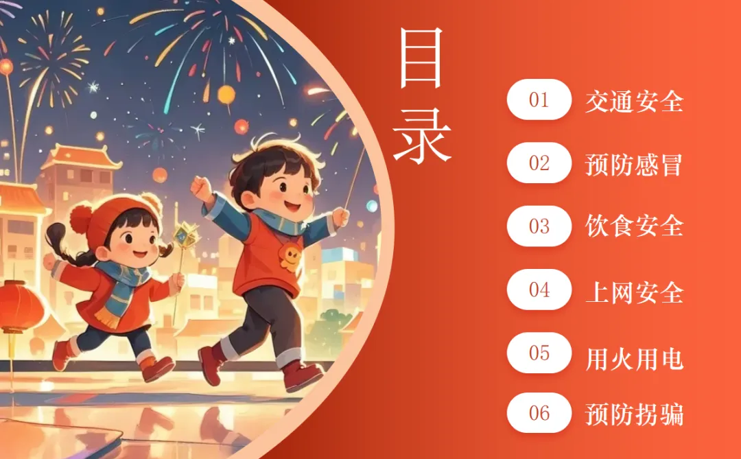 接下来是健康安全,预防疾病是假期健康的 “防护盾”。冬季是呼吸道传染病的高发季节,像流行性感冒、麻疹、风疹、流行性腮腺炎等疾病都容易传播,尤其是我们小朋友和体质较弱的人,更容易受到感染。大家要牢记预防疾病的小妙招:勤洗手是最简单有效的方法,饭前便后、外出归来都要认真洗手,用洗手液或肥皂搓洗至少 20 秒,避免用脏手接触口、眼、鼻。