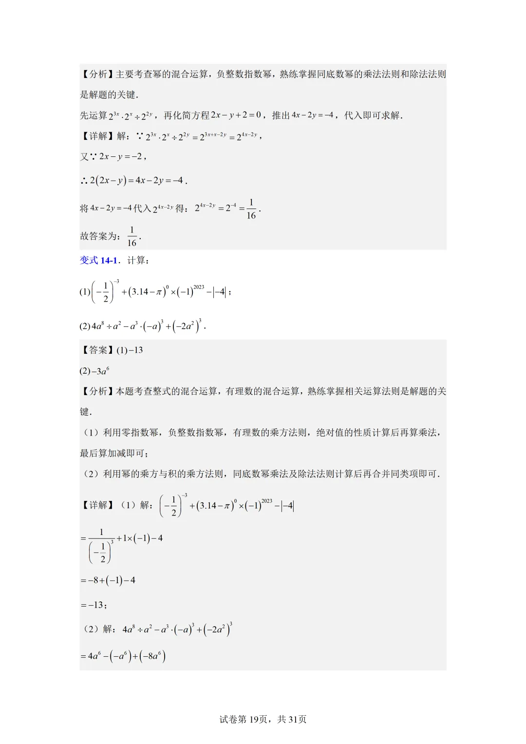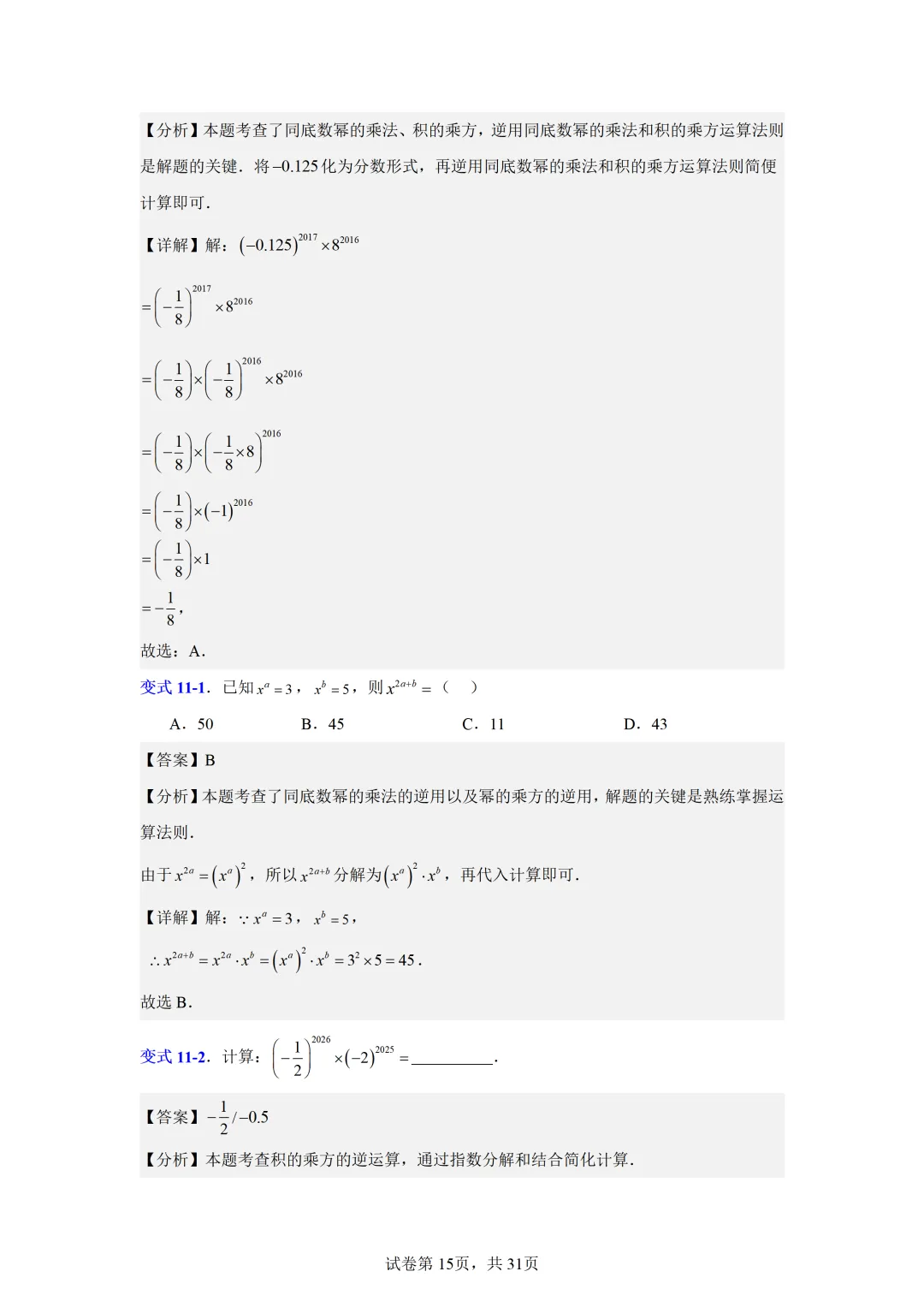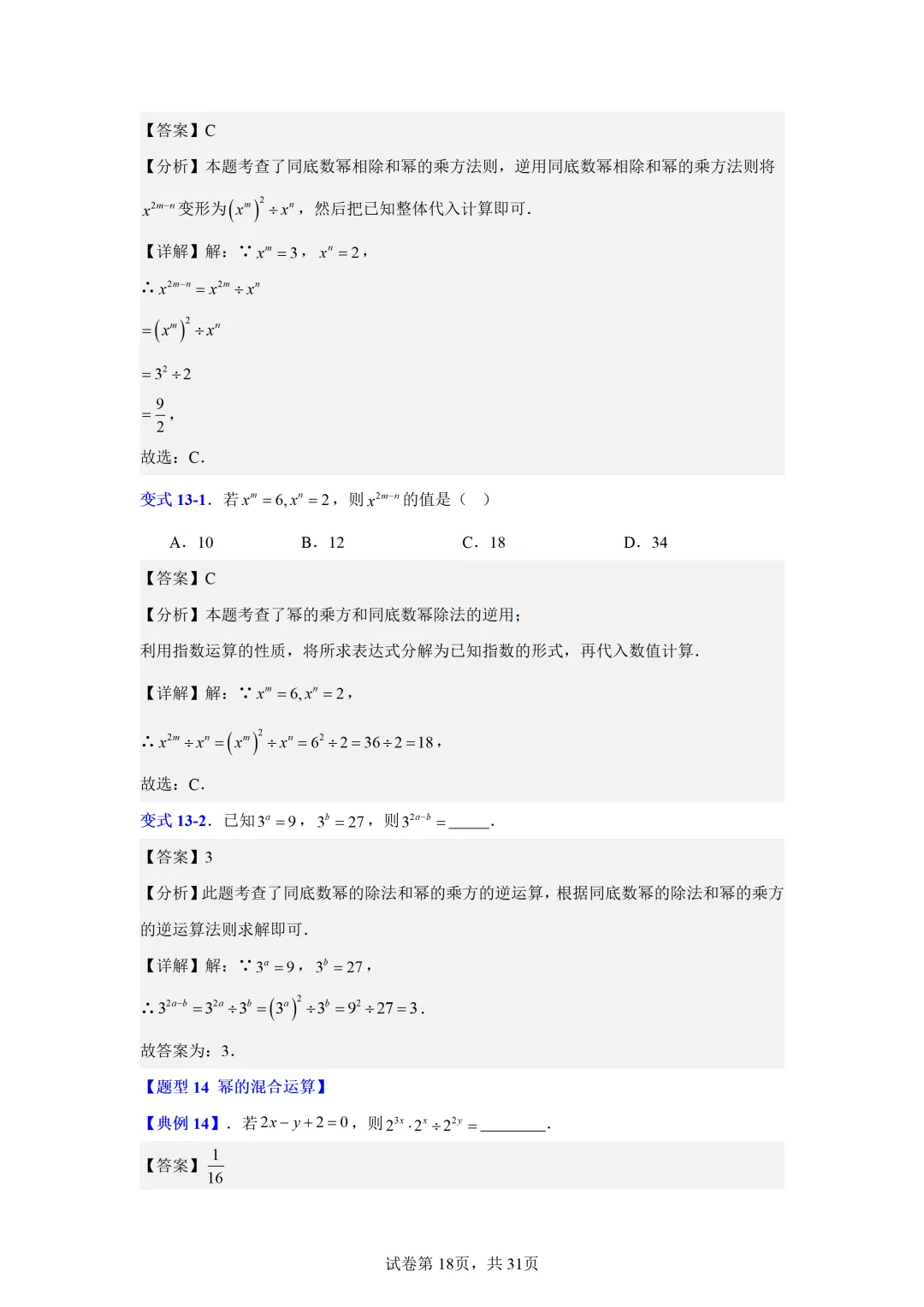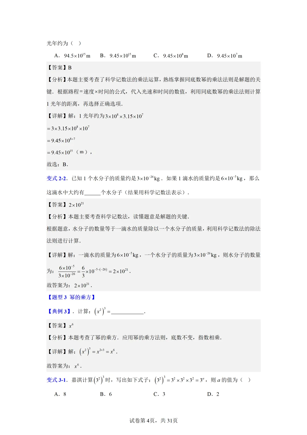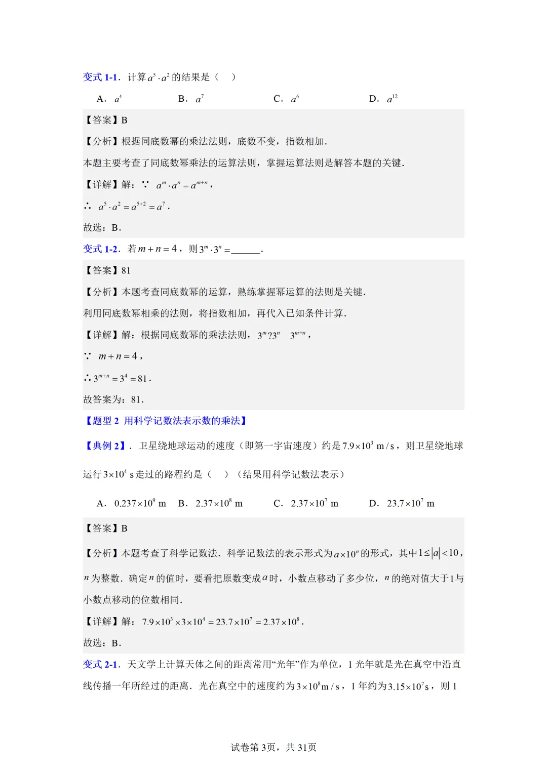 本讲义适配北师大版七年级下册数学 1.1 幂的乘除寒假自主预习,以 “知识点梳理 + 题型突破 + 过关检测” 为核心架构,精准覆盖 7 个核心知识点,囊括同底数幂的乘、除运算,幂的乘方、积的乘方等重点内容,逐一拆解公式推导、适用条件及易错细节,构建完整知识体系。讲义精选 14 类典型题型,按基础巩固、能力提升分层设计,每道题均附详细解析,步骤清晰、思路明确,手把手指导解题方法,帮助学生吃透题型规律。文末配套过关检测,贴合预习难度,全面检验预习效果,查漏补缺。整体内容贴合新教材考纲,适配七年级寒假预习节奏,兼顾基础性与实用性,助力学生衔接旧知、夯实新知,轻松掌握幂的乘除运算技巧,为新学期课堂学习筑牢基础。