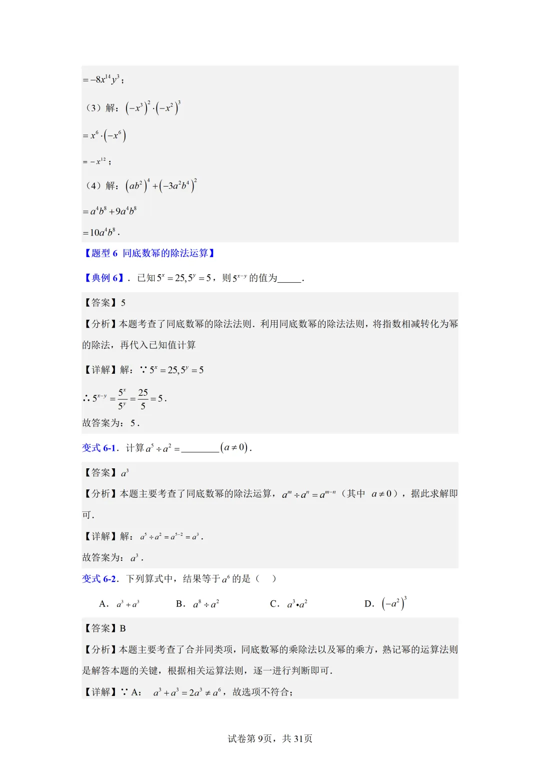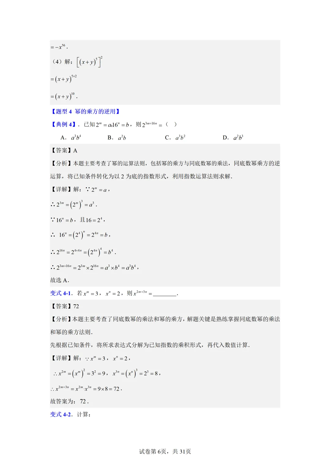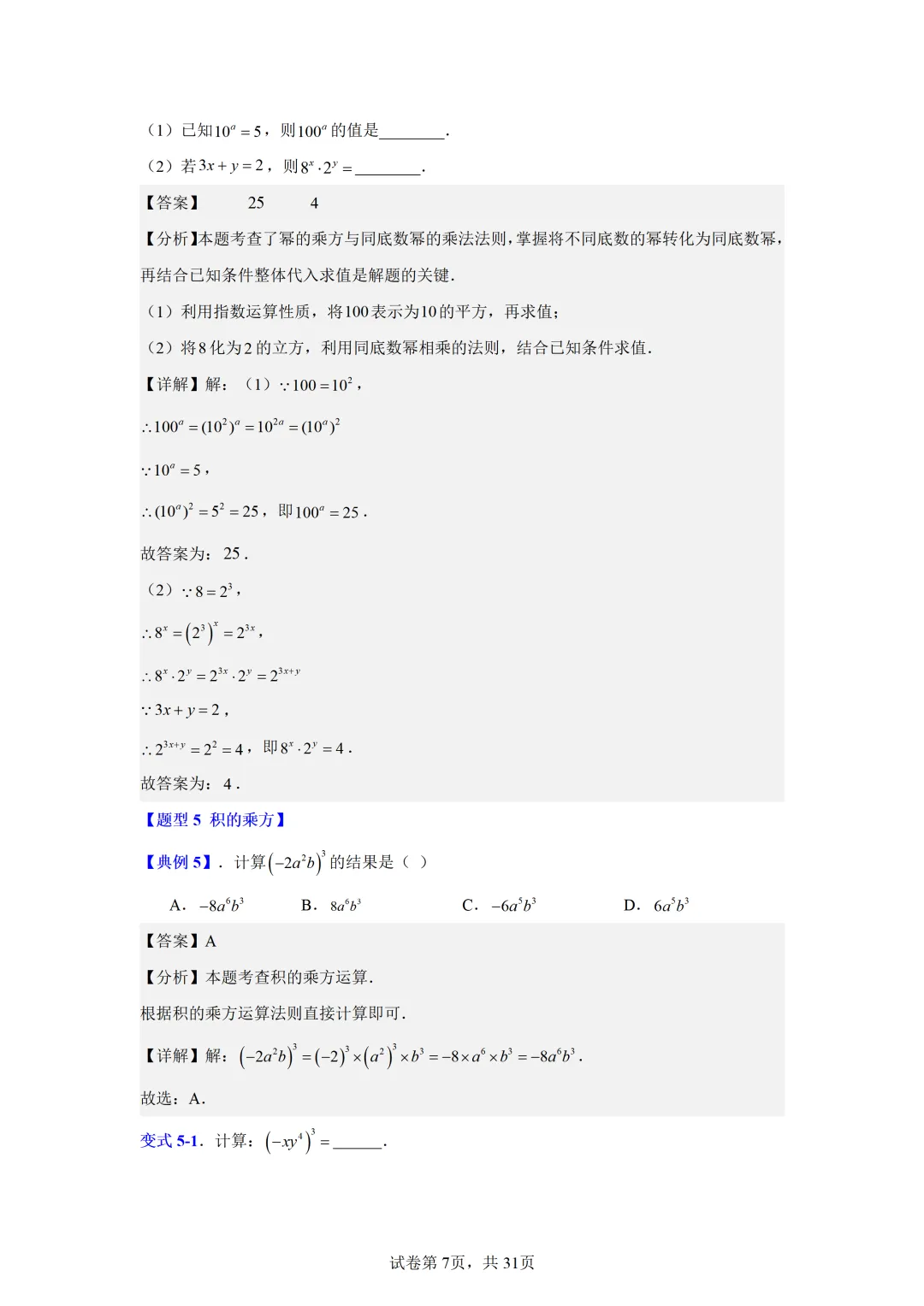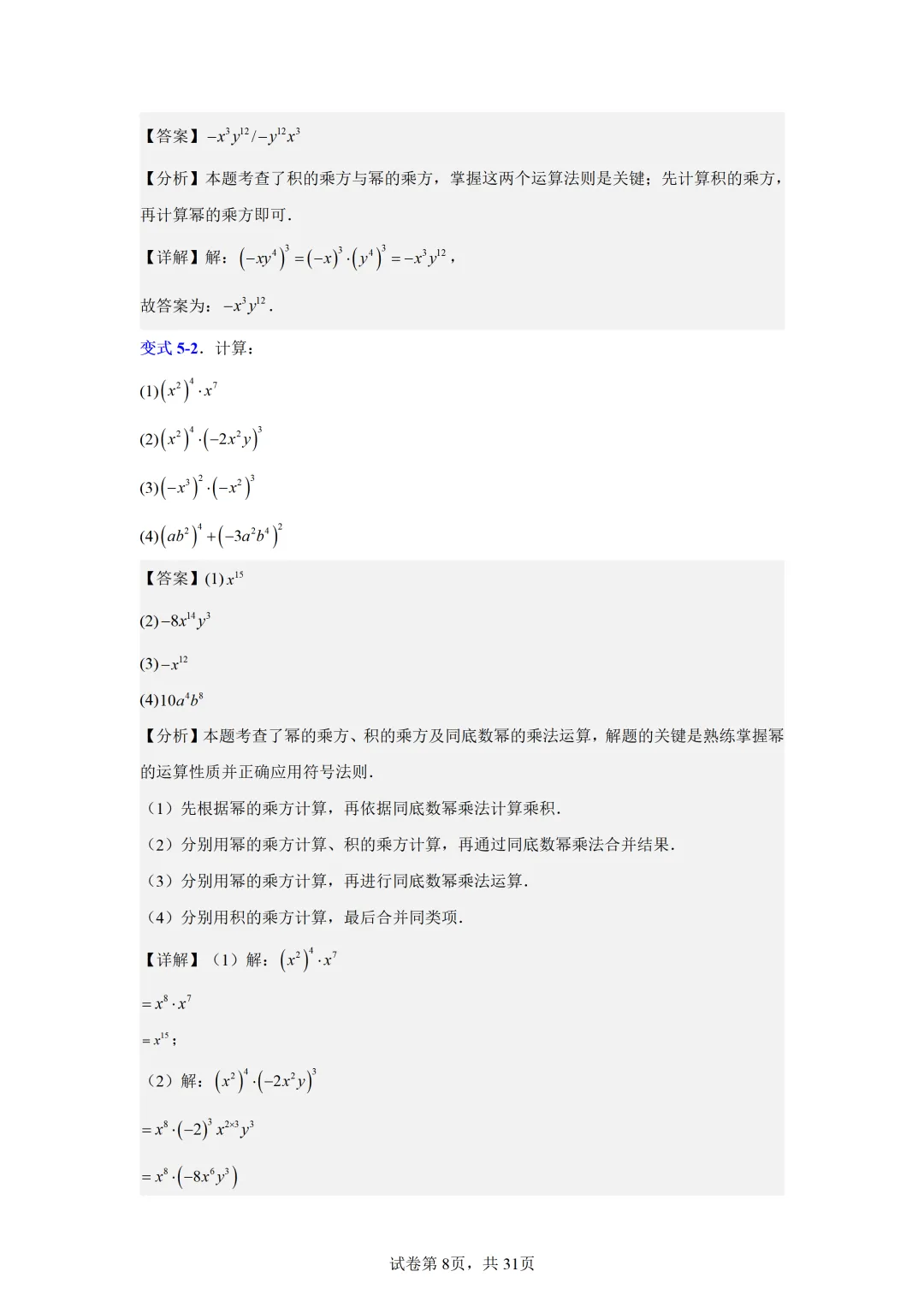 本讲义适配北师大版七年级下册数学 1.1 幂的乘除寒假自主预习,以 “知识点梳理 + 题型突破 + 过关检测” 为核心架构,精准覆盖 7 个核心知识点,囊括同底数幂的乘、除运算,幂的乘方、积的乘方等重点内容,逐一拆解公式推导、适用条件及易错细节,构建完整知识体系。讲义精选 14 类典型题型,按基础巩固、能力提升分层设计,每道题均附详细解析,步骤清晰、思路明确,手把手指导解题方法,帮助学生吃透题型规律。文末配套过关检测,贴合预习难度,全面检验预习效果,查漏补缺。整体内容贴合新教材考纲,适配七年级寒假预习节奏,兼顾基础性与实用性,助力学生衔接旧知、夯实新知,轻松掌握幂的乘除运算技巧,为新学期课堂学习筑牢基础。