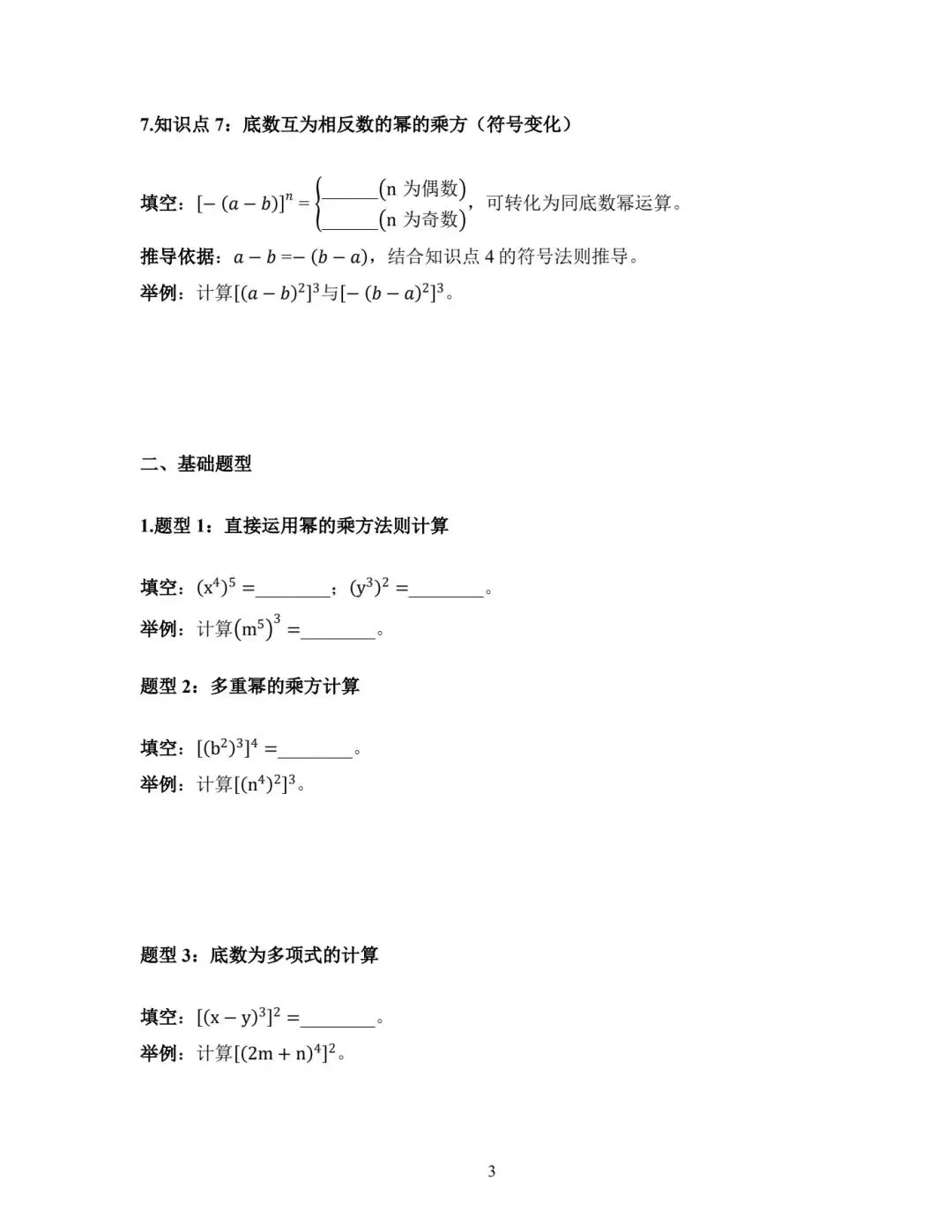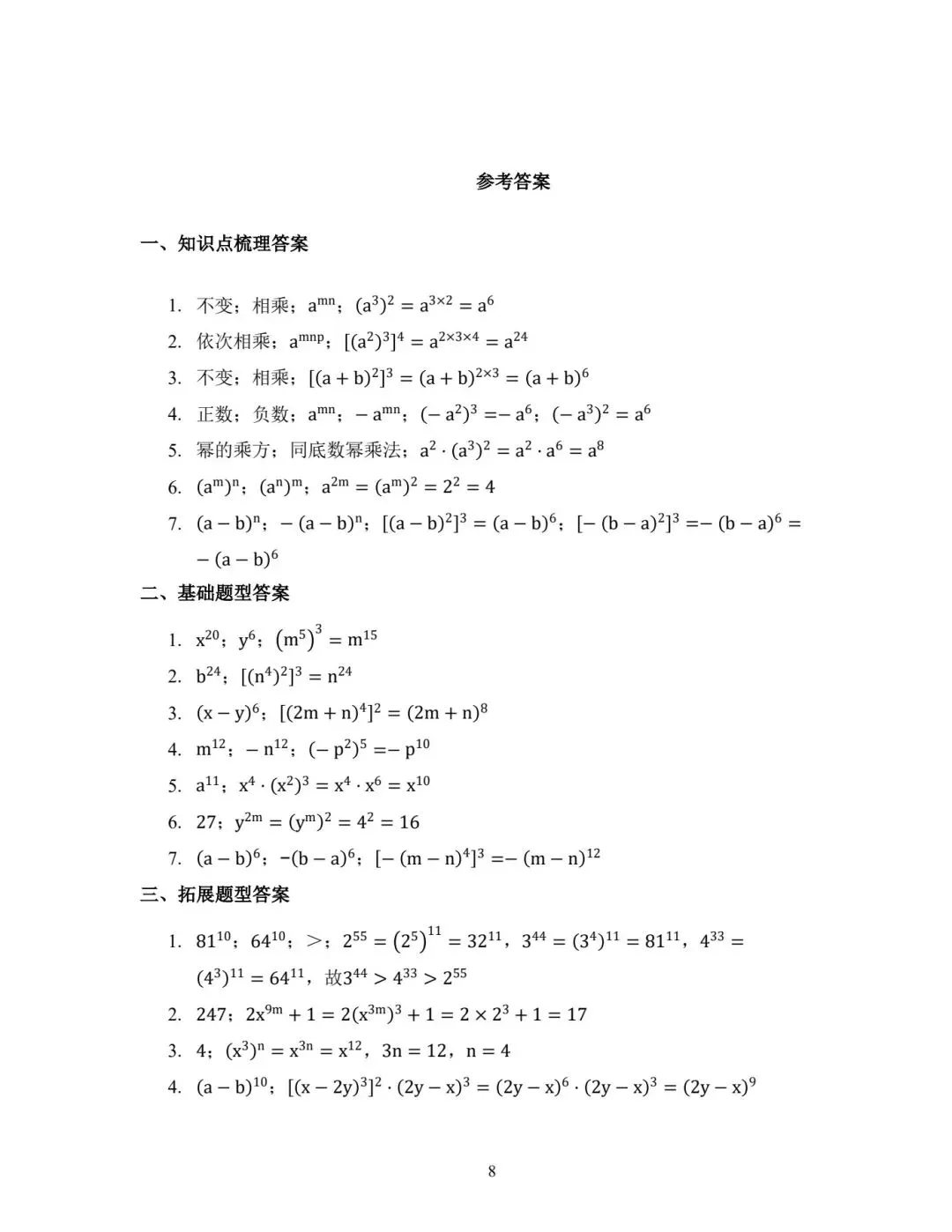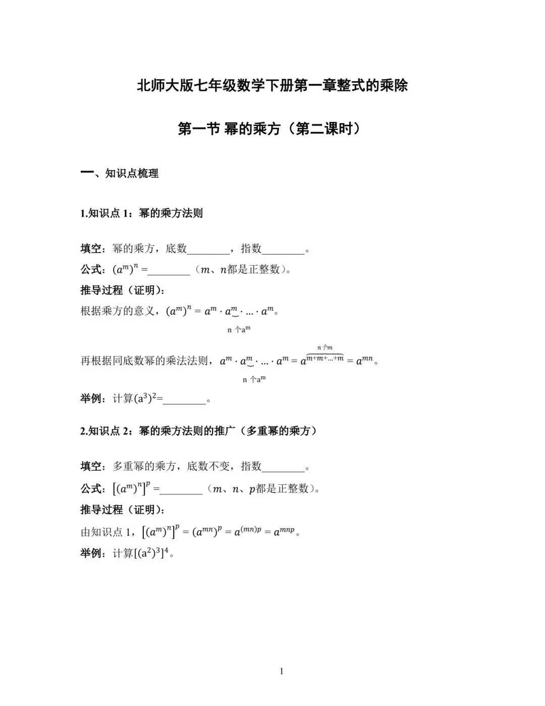 >七年级数学下 1.12 幂的乘方讲义及其答案(第一章第一节第二课时)