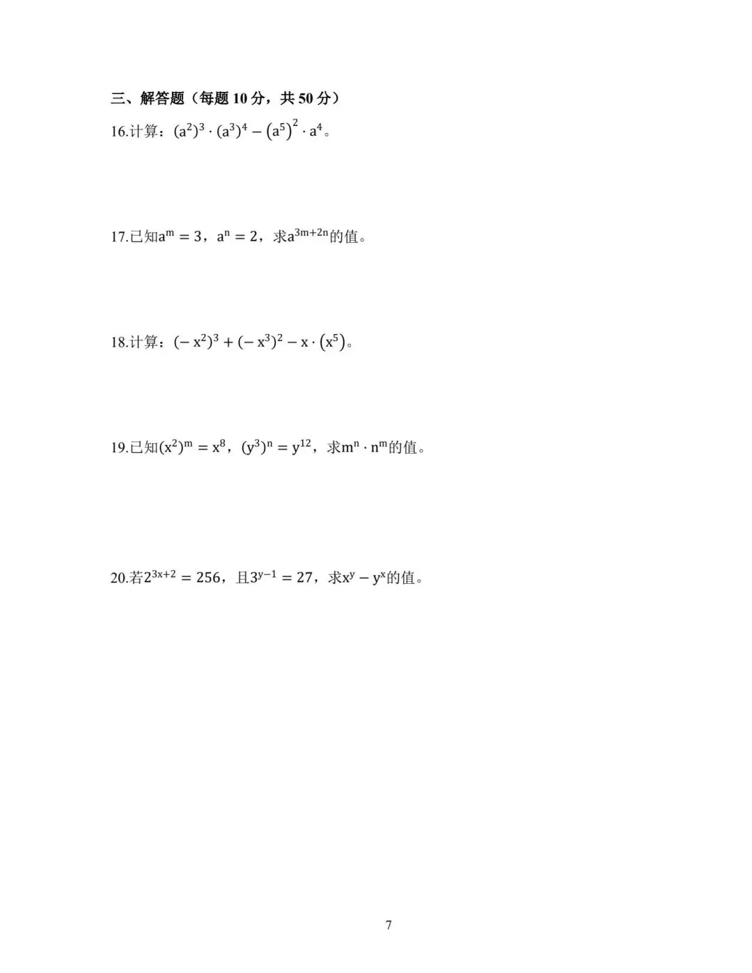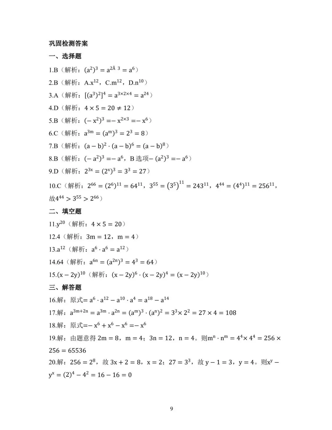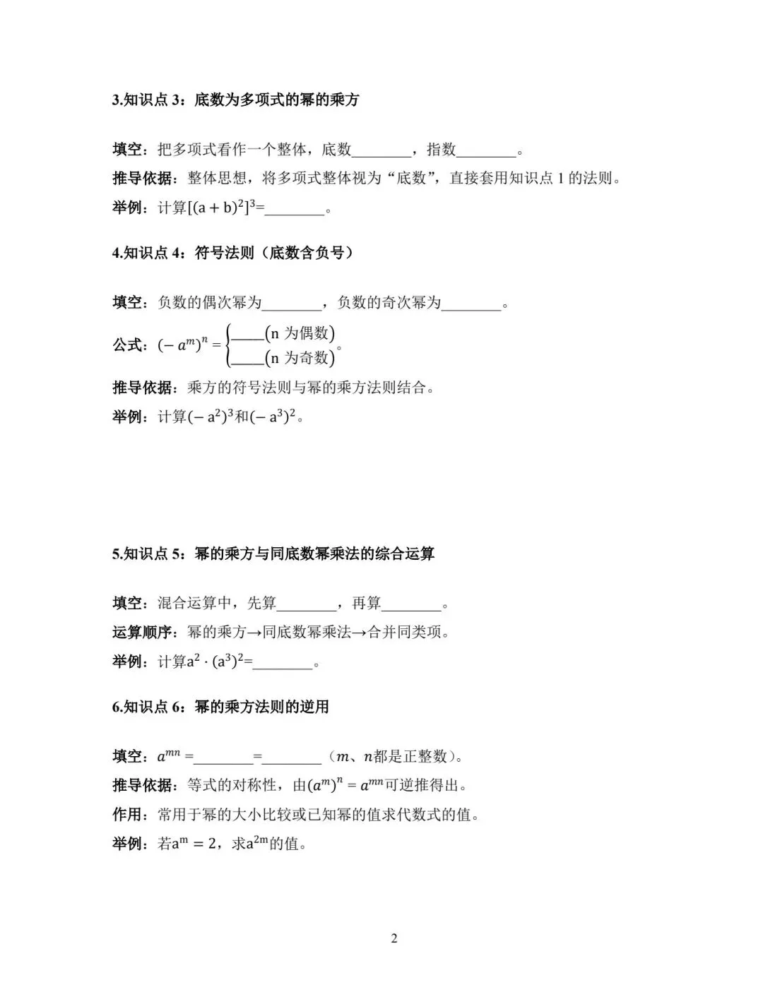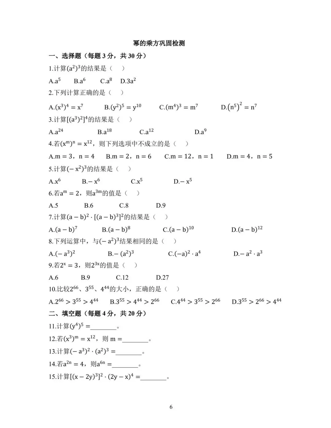 >七年级数学下 1.12 幂的乘方讲义及其答案(第一章第一节第二课时)