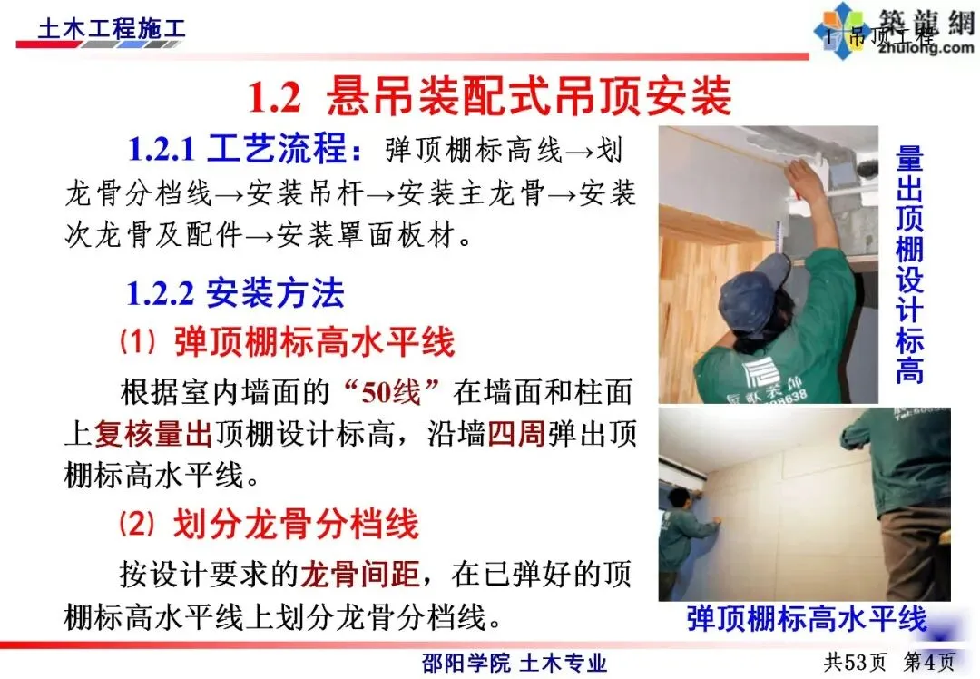 吊顶工程:就是给天花板做装饰,主要分 “露龙骨”(明龙骨)和 “藏龙骨”(暗龙骨)两种。先准备好木、轻钢或铝合金材质的龙骨(骨架),再搭配石膏板、矿棉板等面板;施工时先弹线定高度,装吊杆固定骨架,最后铺上面板,确保平整牢固。