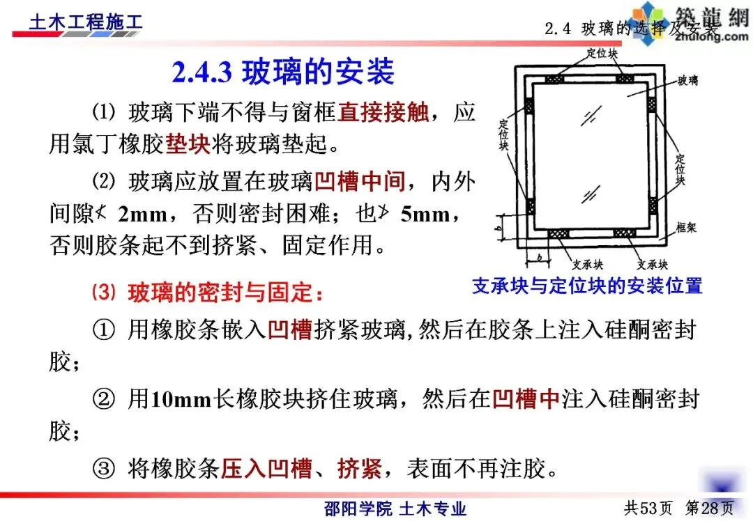 门窗安装工程:涵盖木、铝合金、塑钢三种常用门窗。核心是 “先留洞口再装框”,框要固定牢,框和墙的缝隙用泡沫、密封胶填好(不能用水泥);玻璃优先选安全玻璃(钢化、夹层等),单块超过 1.5㎡必须用安全玻璃,安装时要垫橡胶块,避免直接接触窗框。