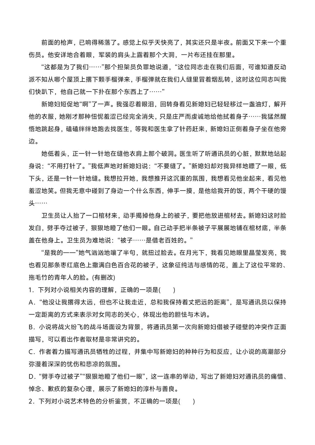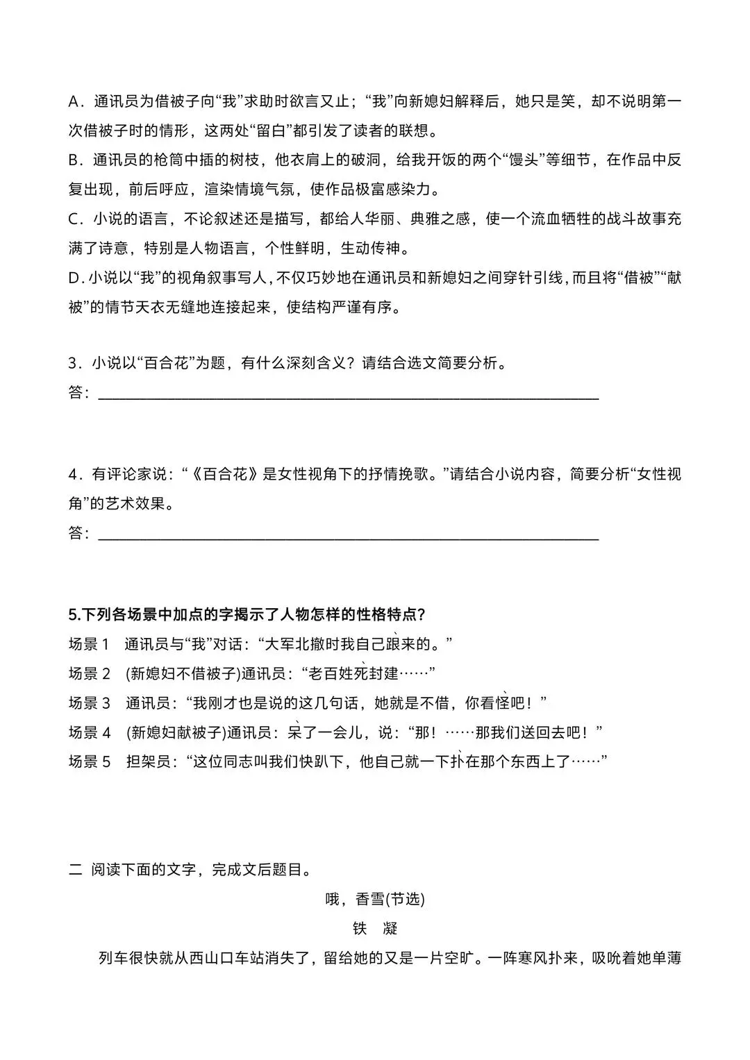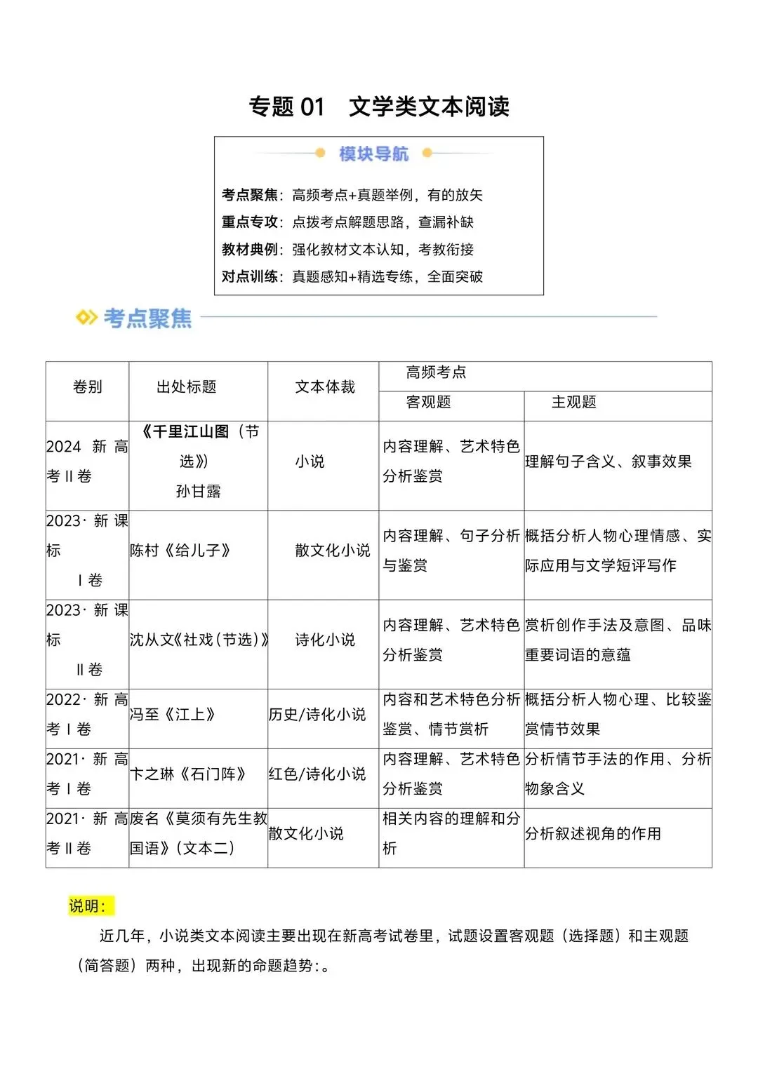 2026高中高一语文寒假复习预习讲义(文学类文本阅读专题)电子版可打印