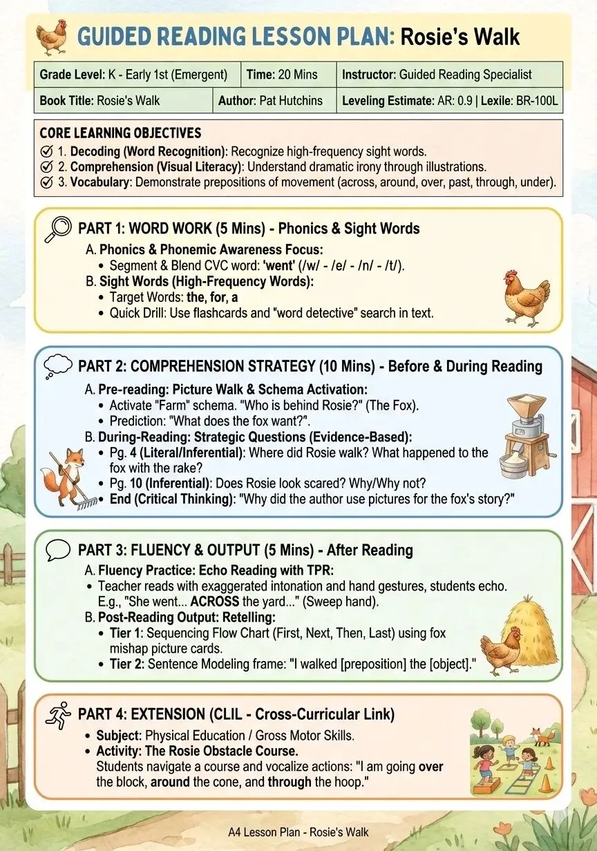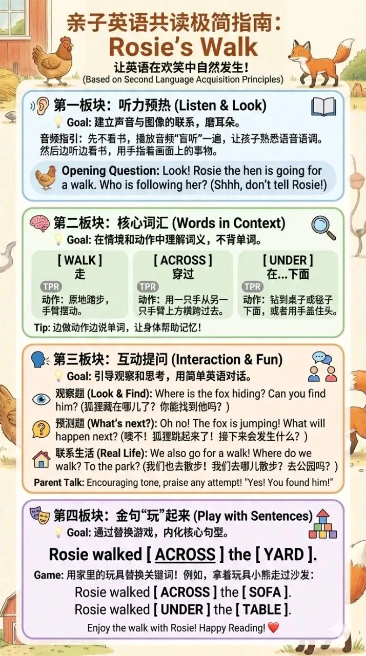 以低幼绘本Rosie's Walk 为例生成内容: